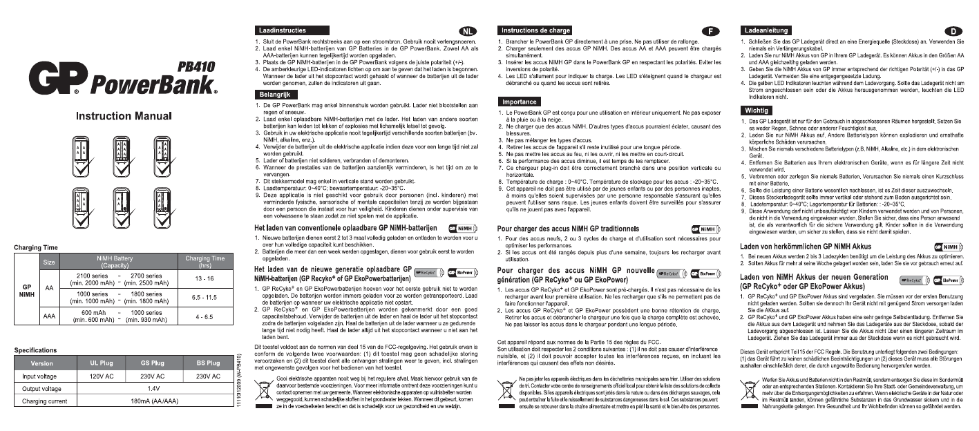 Gp Batteries PowerBank 410 Handleiding