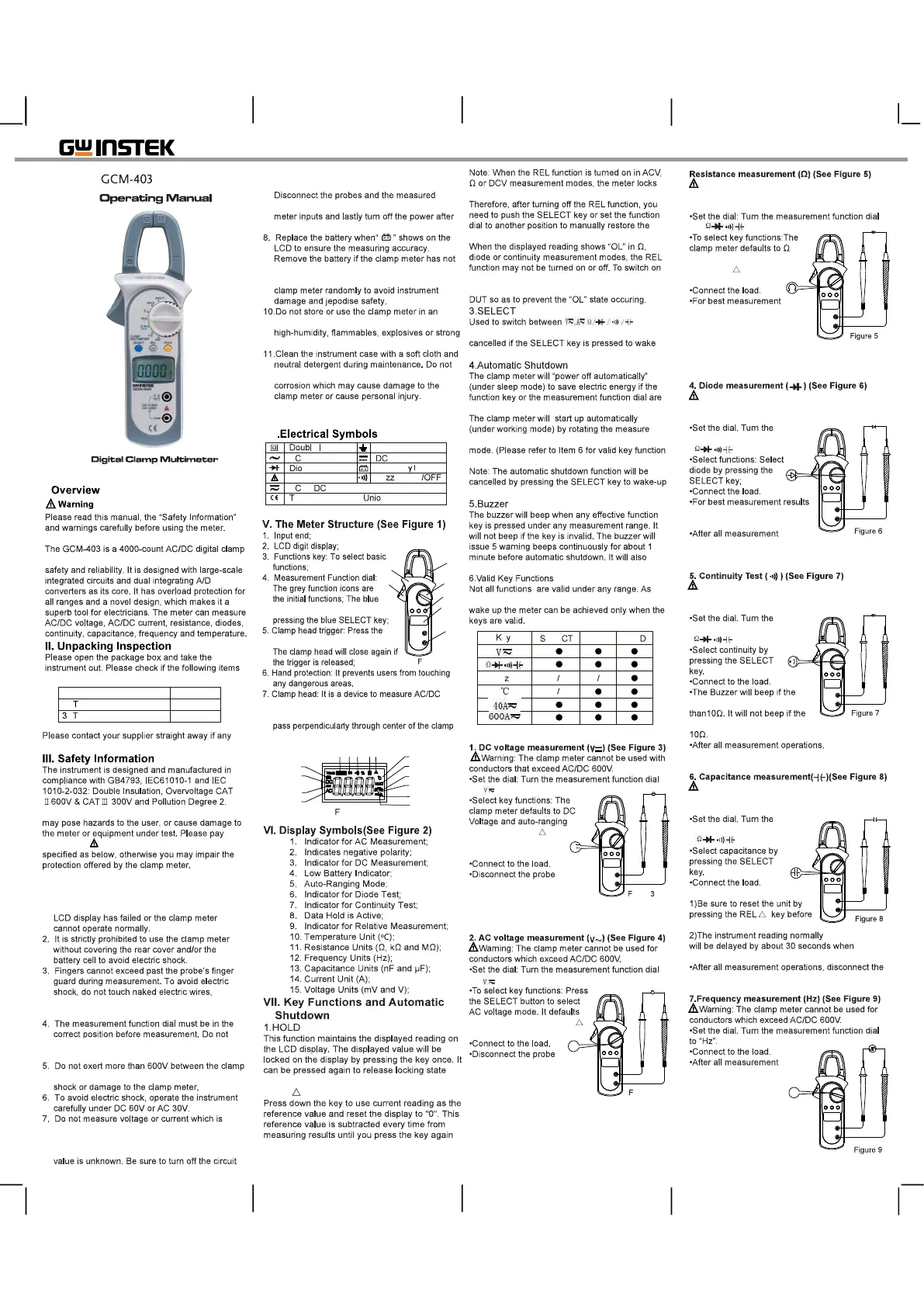 1. Please inspect the clamp meter and test leads