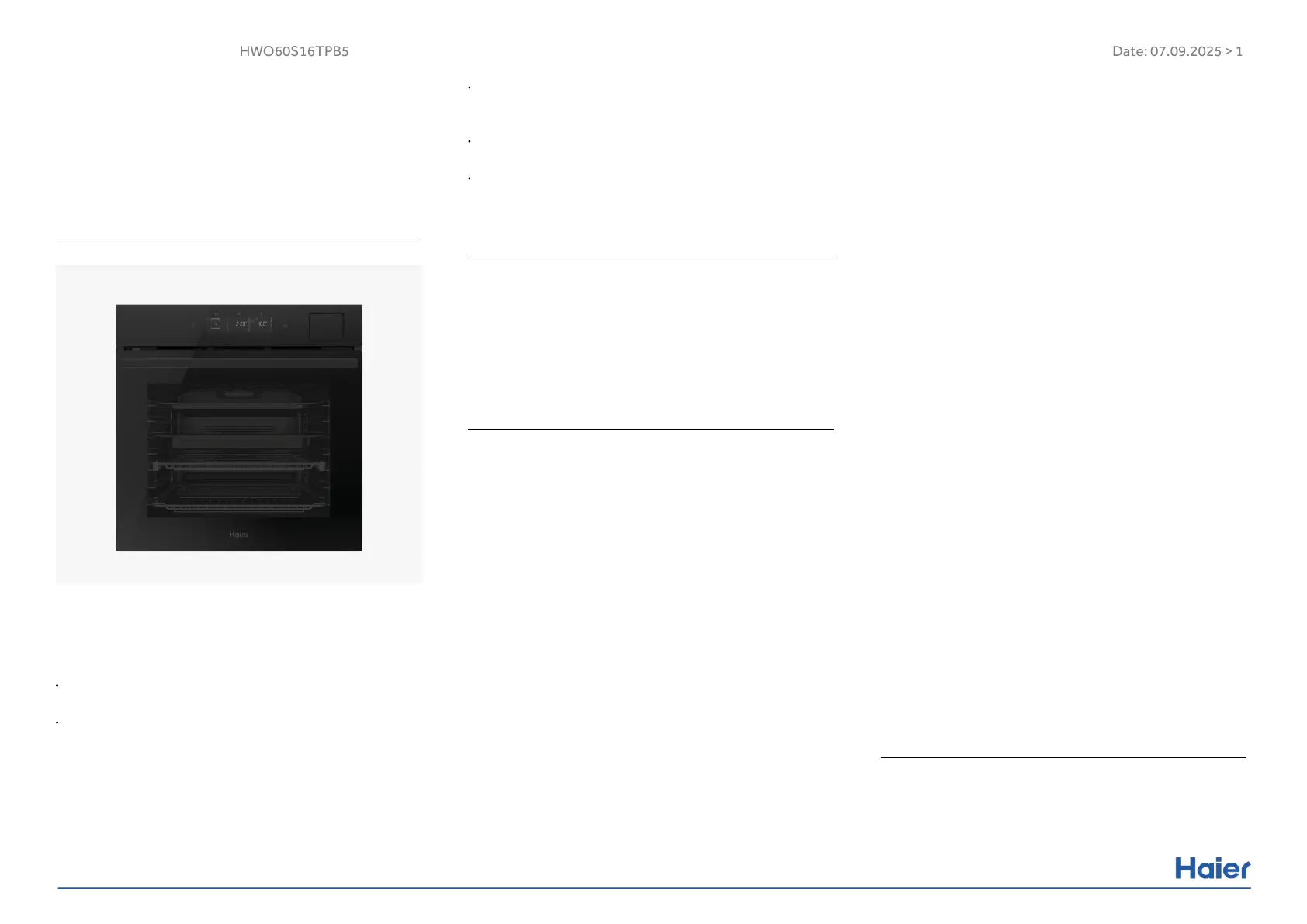 Bekijk gratis de handleiding van Haier HWO60S16TPB5 (3 pagina’s), behorend tot de categorie Oven. Deze gids werd als nuttig beoordeeld door 11 mensen en kreeg gemiddeld 5.0 sterren uit 6 reviews. Heb je een vraag over Haier HWO60S16TPB5 of wil je andere gebruikers van dit product iets vragen? Stel een vraag