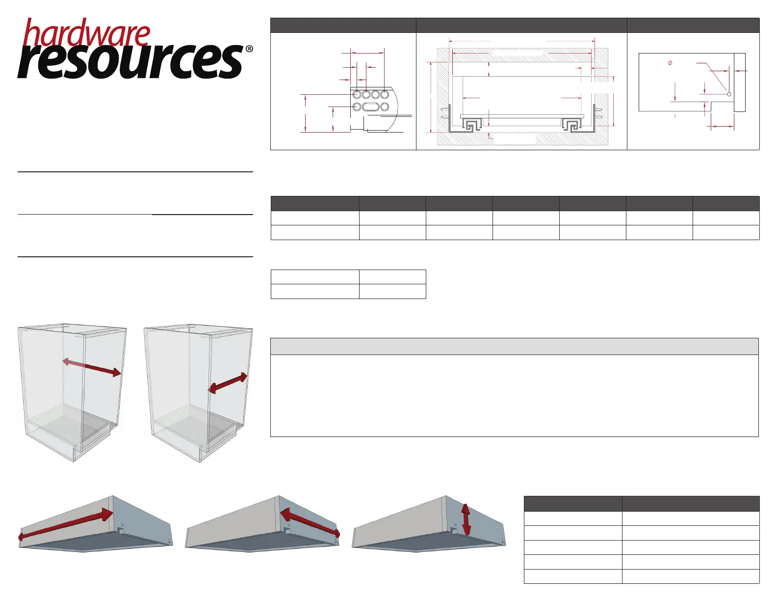 FRONT HOLE PATTERNFRONT VIEW OF THE DRAWER INSIDE THE CABINETREAR NOTCH DIMENSIONS