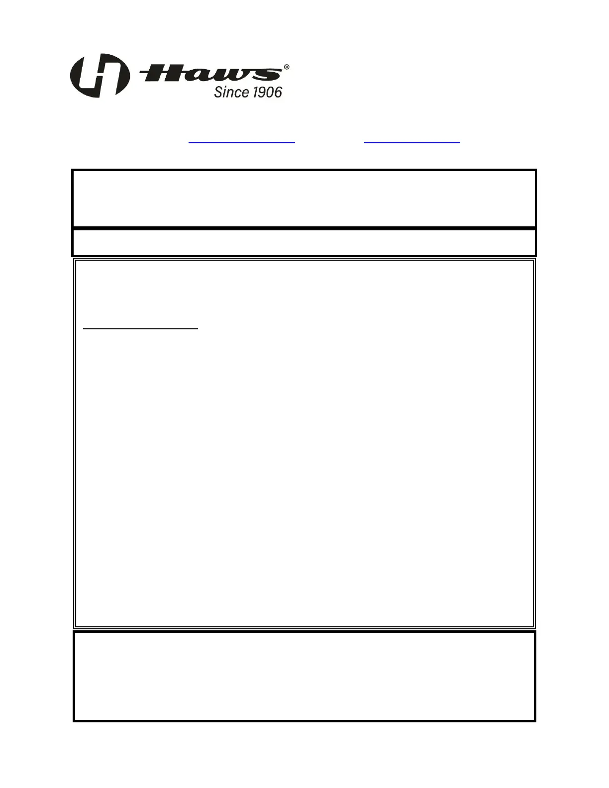 Equipment manufactured by HAWS is warranted to function if installation and maintenance instructions