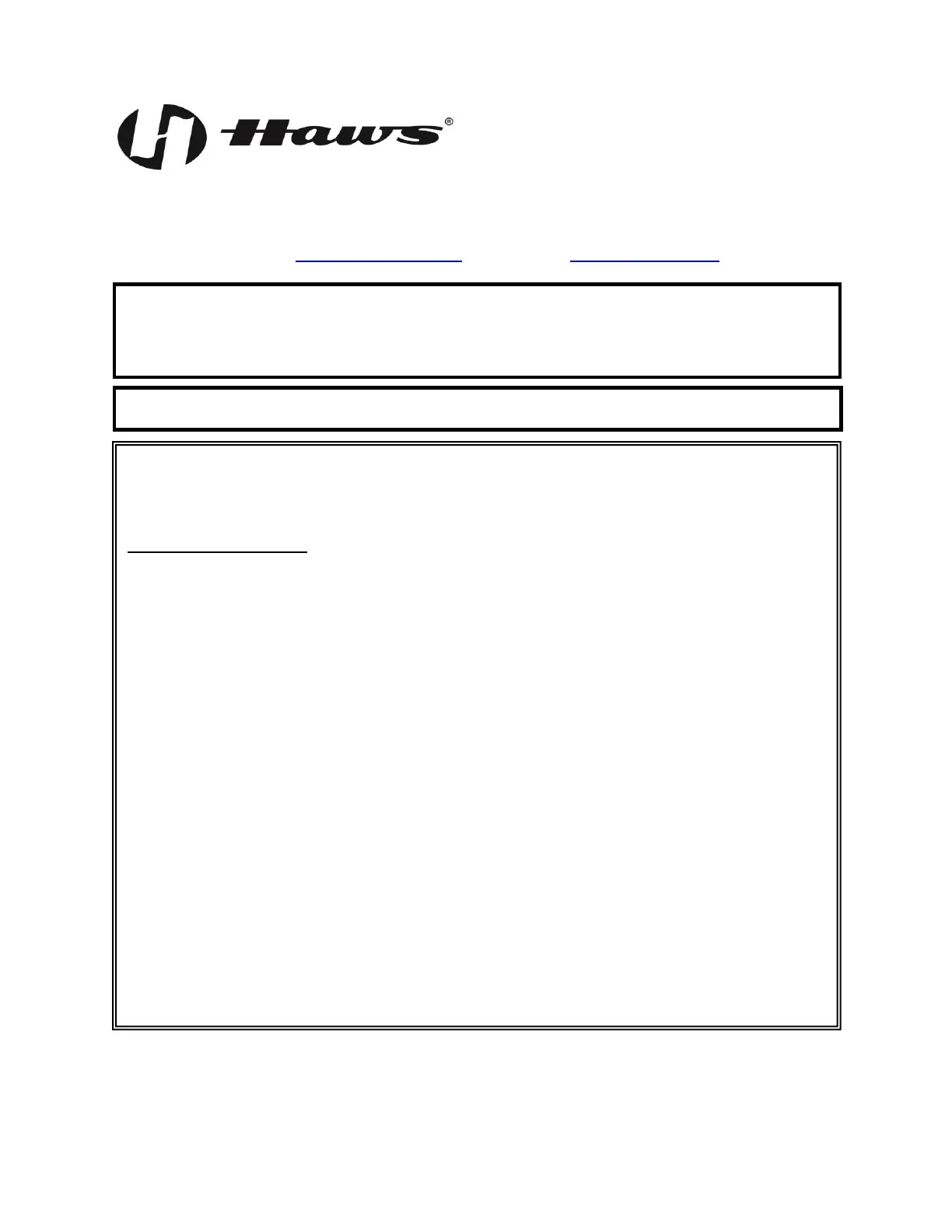 Equipment manufactured by HAWS is warranted to function if installation and maintenance instructions
