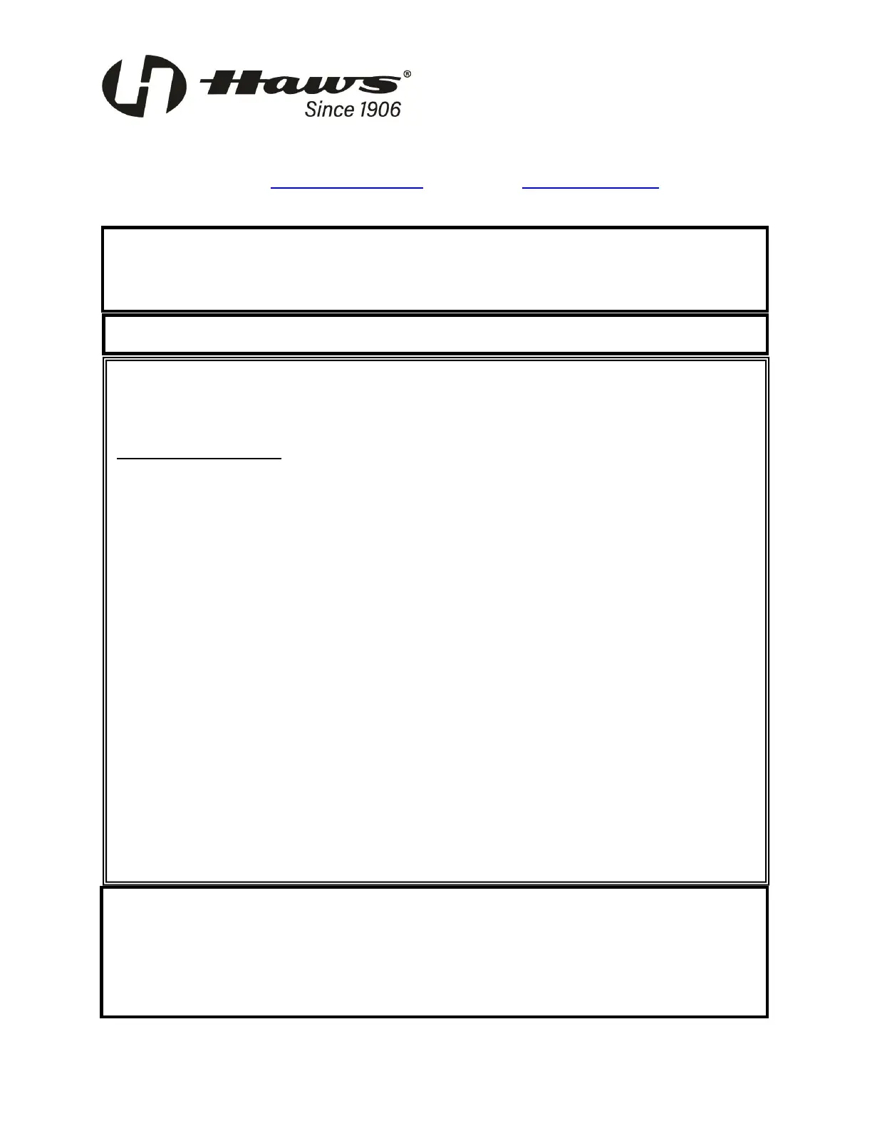 Equipment manufactured by HAWS is warranted to function if installation and maintenance instructions