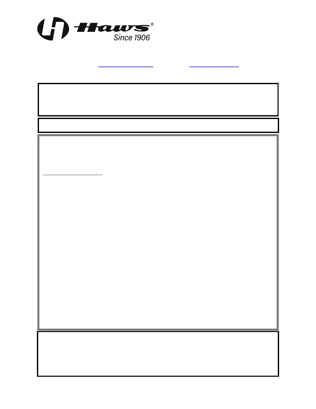 Equipment manufactured by HAWS is warranted to function if installation and maintenance instructions