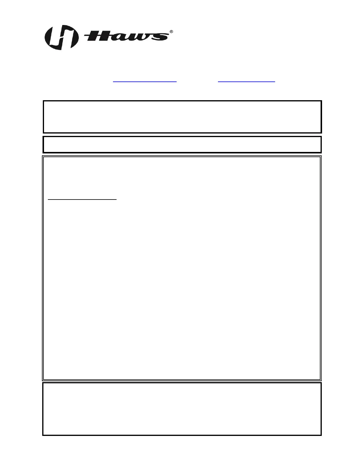 Equipment manufactured by HAWS is warranted to function if installation and maintenance instructions