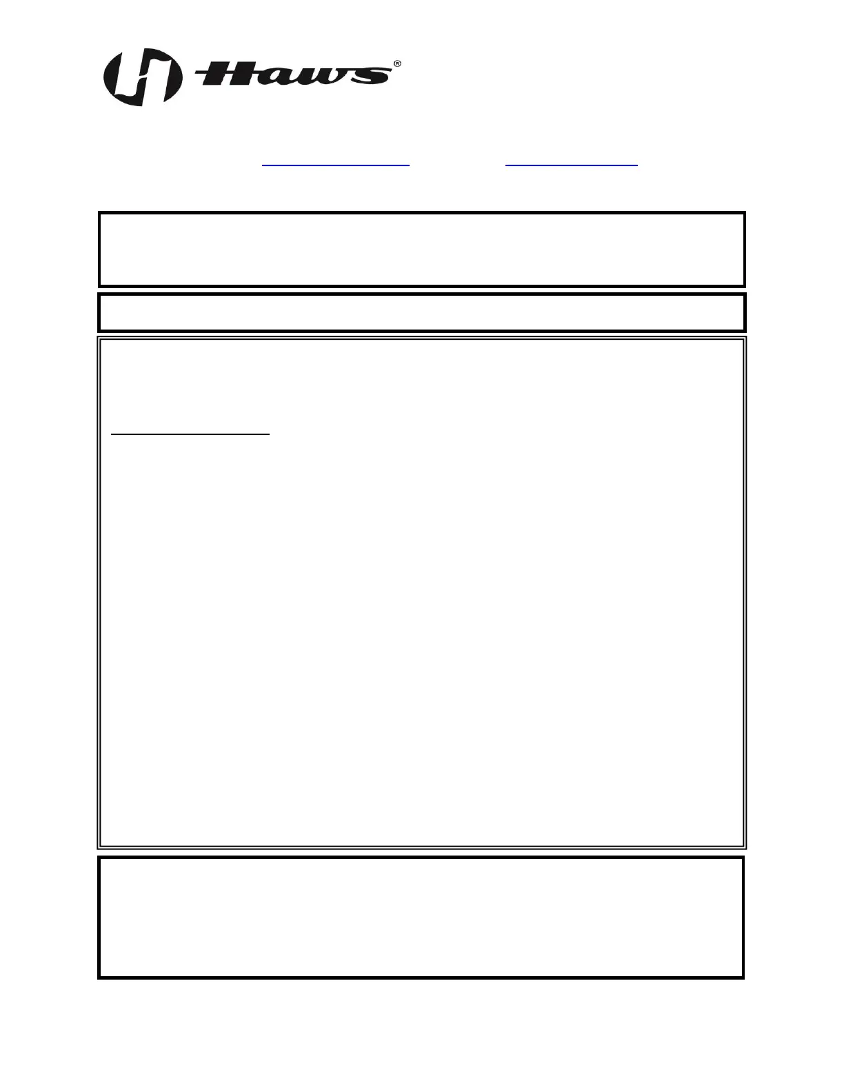 Equipment manufactured by HAWS is warranted to function if installation and maintenance instructions