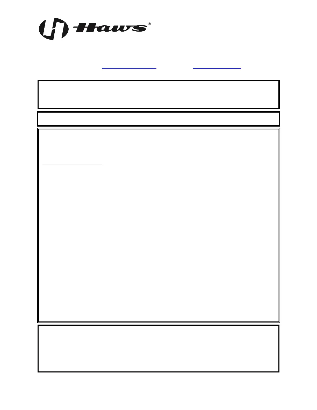 Equipment manufactured by HAWS is warranted to function if installation and maintenance instructions