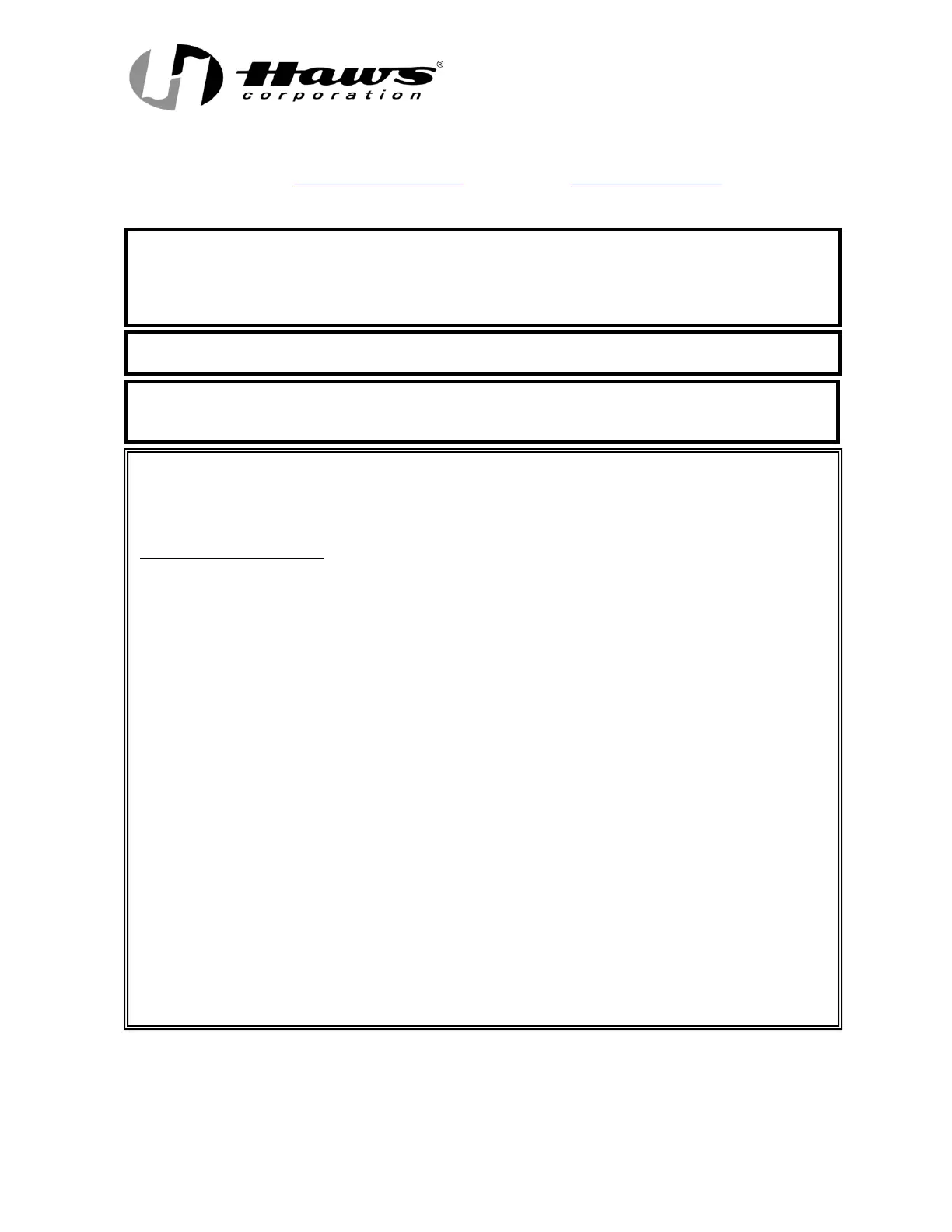 Equipment manufactured by HAWS is warranted to function if installation and maintenance instructions