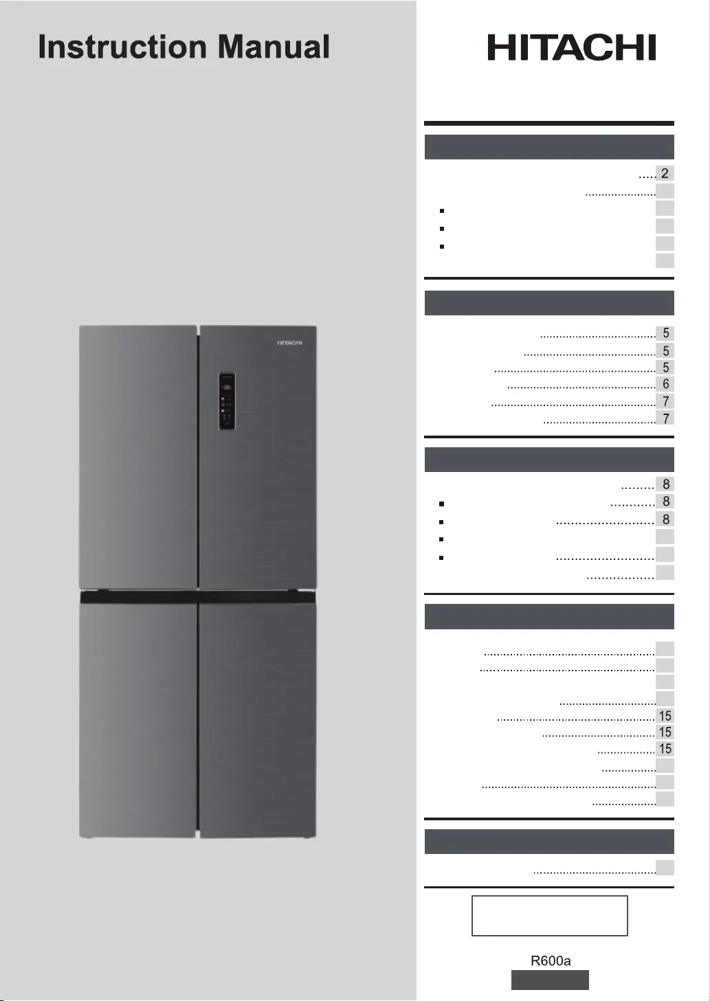 Thank you very much for purchasing the Hitachi refrigerator.