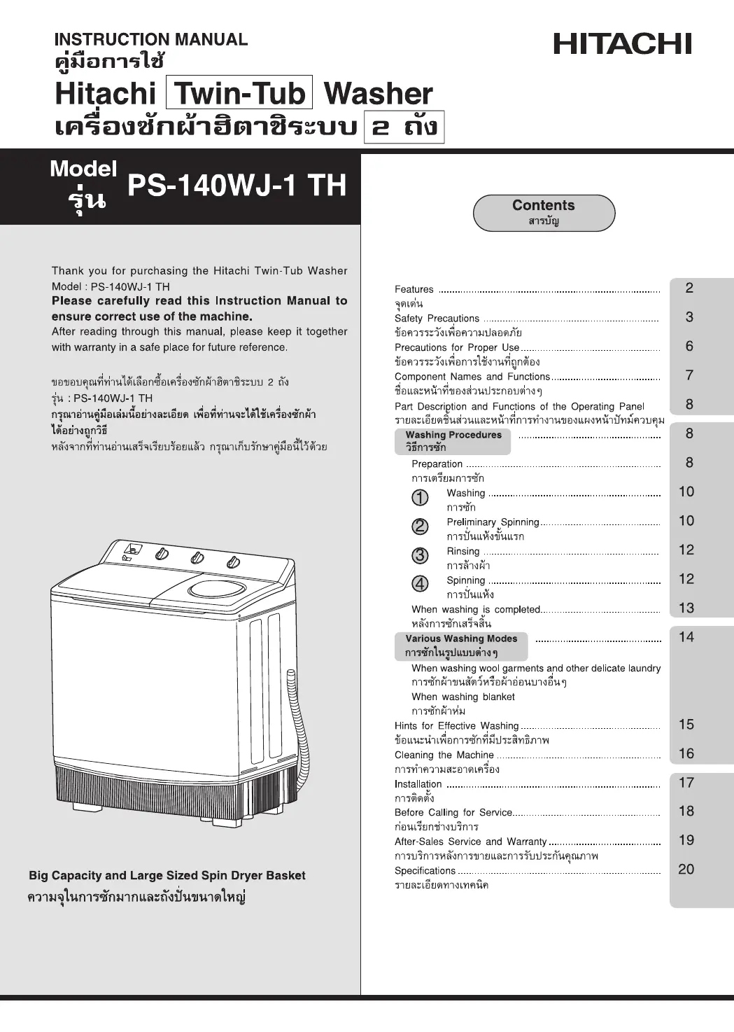 Bekijk gratis de handleiding van Hitachi PS-140WJ (20 pagina’s), behorend tot de categorie Wasmachine. Deze gids werd als nuttig beoordeeld door 2 mensen en kreeg gemiddeld 4.8 sterren uit 2 reviews. Heb je een vraag over Hitachi PS-140WJ of wil je andere gebruikers van dit product iets vragen? Stel een vraag