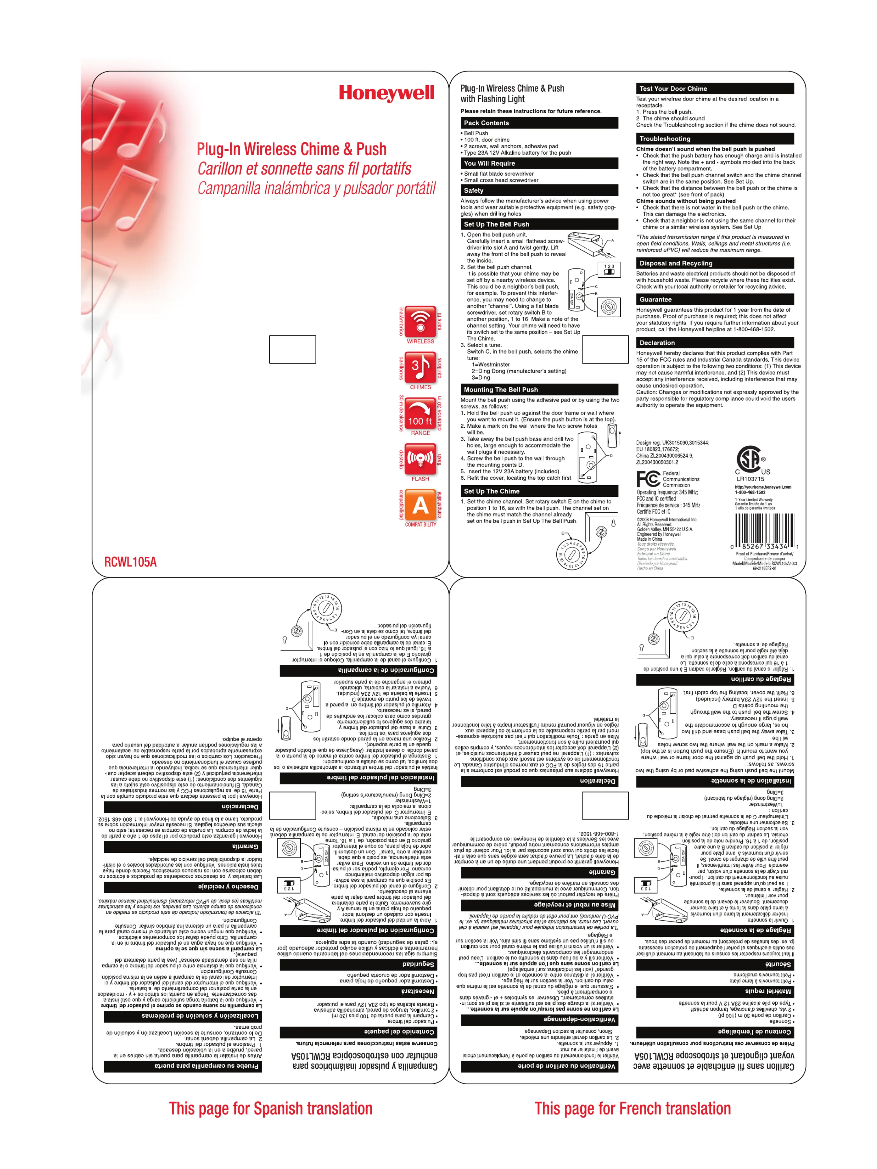 Honeywell RCWL105A Handleiding
