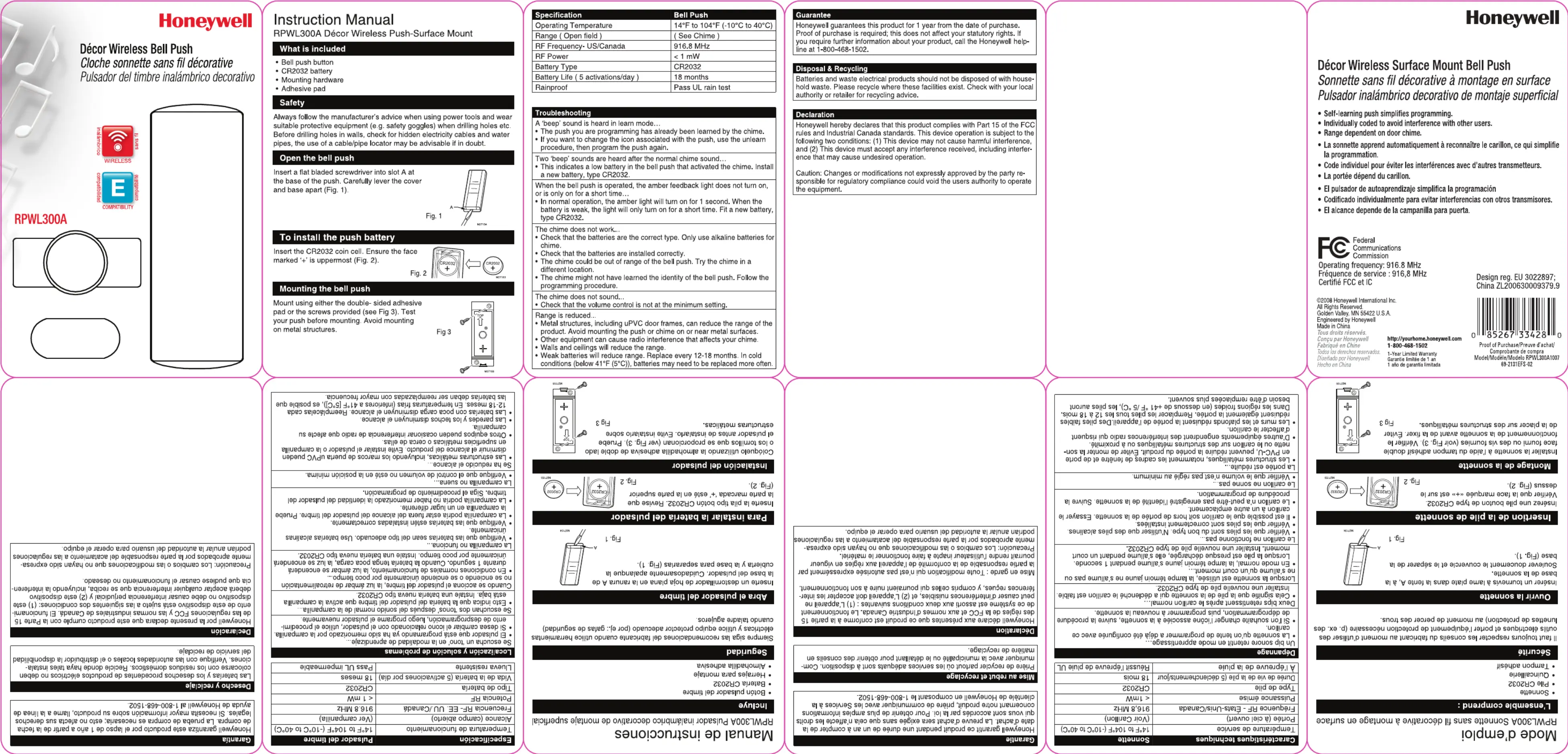 Bekijk gratis de handleiding van Honeywell RPWL300A (40 pagina’s), behorend tot de categorie Deurbel. Deze gids werd als nuttig beoordeeld door 24 mensen en kreeg gemiddeld 4.4 sterren uit 2 reviews. Heb je een vraag over Honeywell RPWL300A of wil je andere gebruikers van dit product iets vragen? Stel een vraag