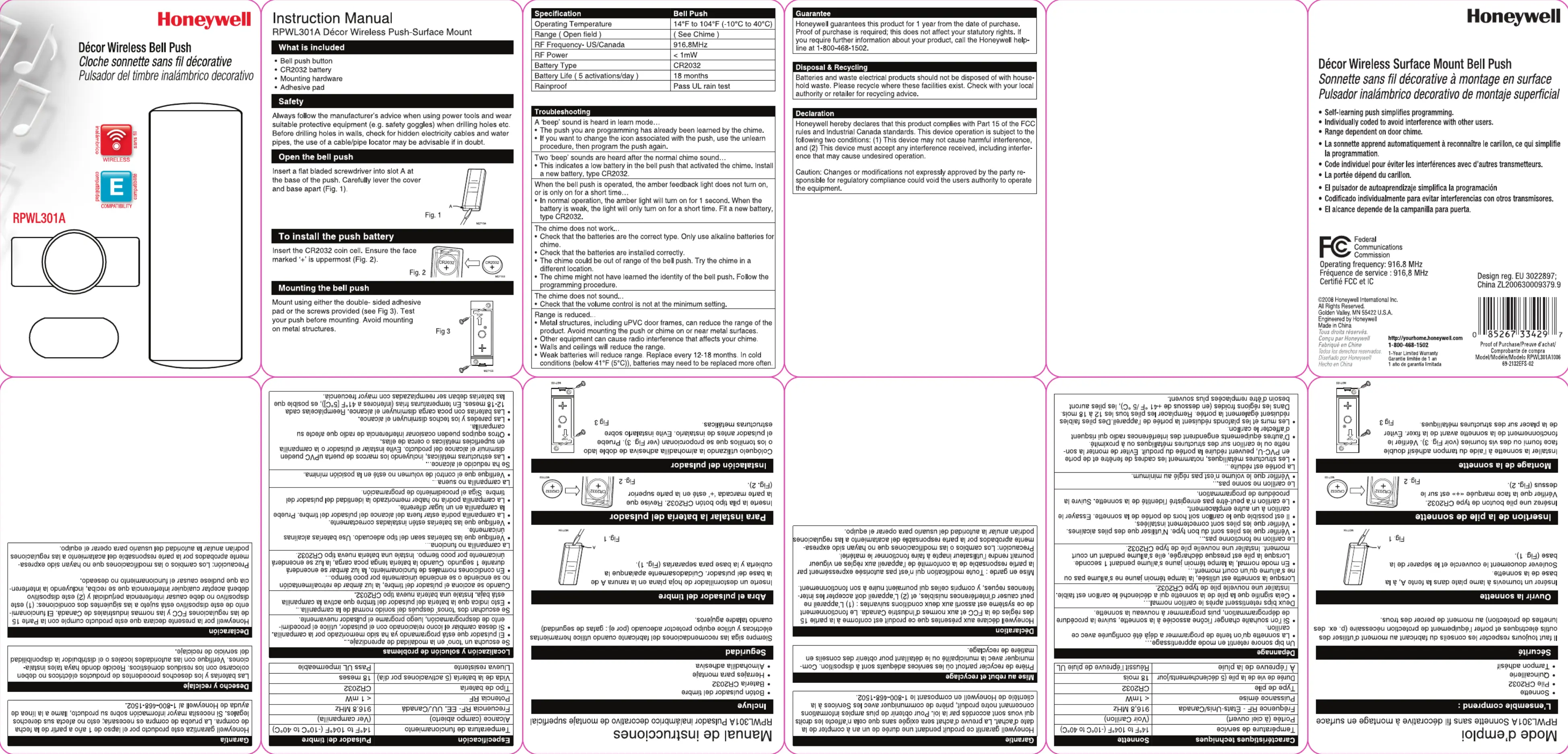 Bekijk gratis de handleiding van Honeywell RPWL301A (1 pagina’s), behorend tot de categorie Deurbel. Deze gids werd als nuttig beoordeeld door 17 mensen en kreeg gemiddeld 5.0 sterren uit 3 reviews. Heb je een vraag over Honeywell RPWL301A of wil je andere gebruikers van dit product iets vragen? Stel een vraag