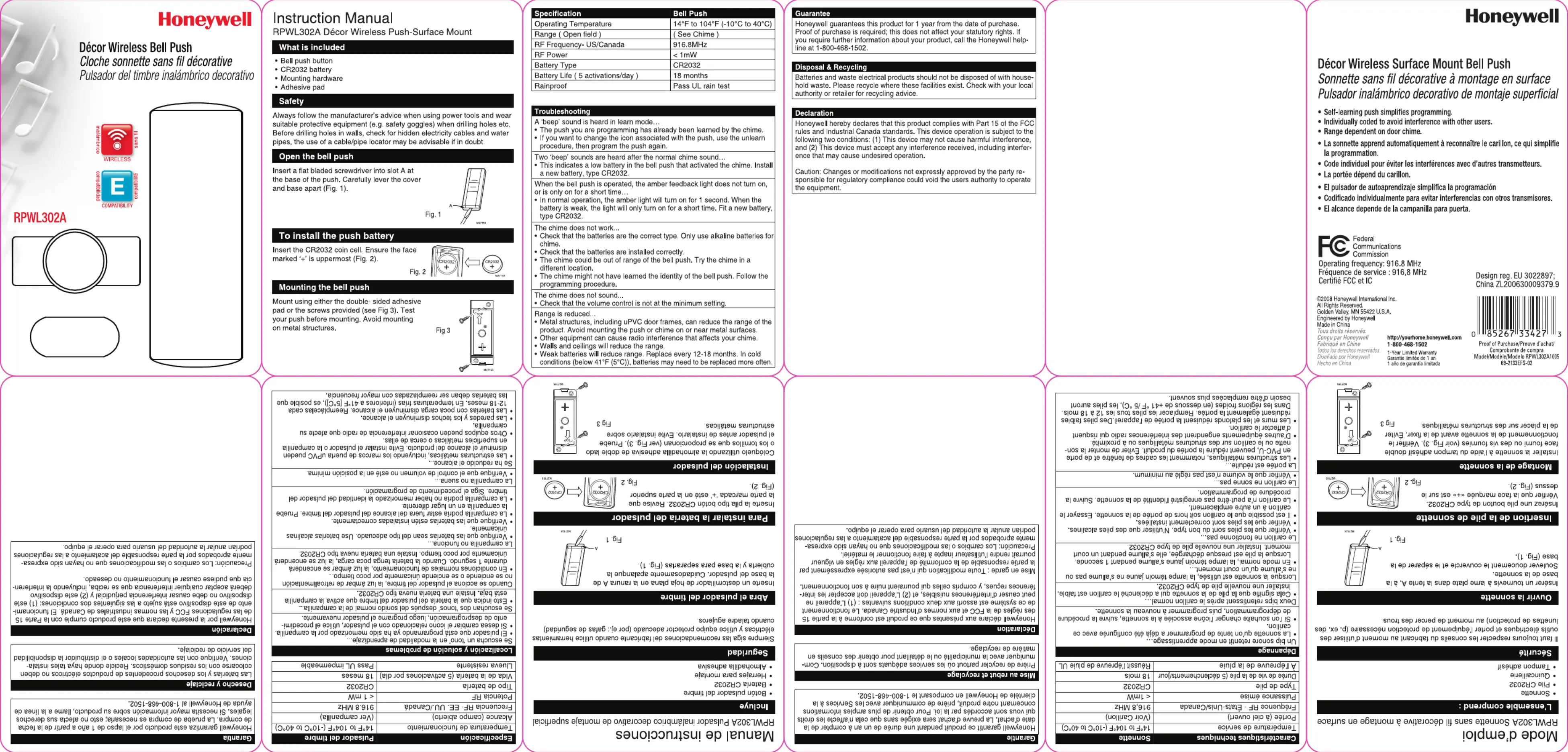 Bekijk gratis de handleiding van Honeywell RPWL302A (1 pagina’s), behorend tot de categorie Deurbel. Deze gids werd als nuttig beoordeeld door 22 mensen en kreeg gemiddeld 4.9 sterren uit 4 reviews. Heb je een vraag over Honeywell RPWL302A of wil je andere gebruikers van dit product iets vragen? Stel een vraag