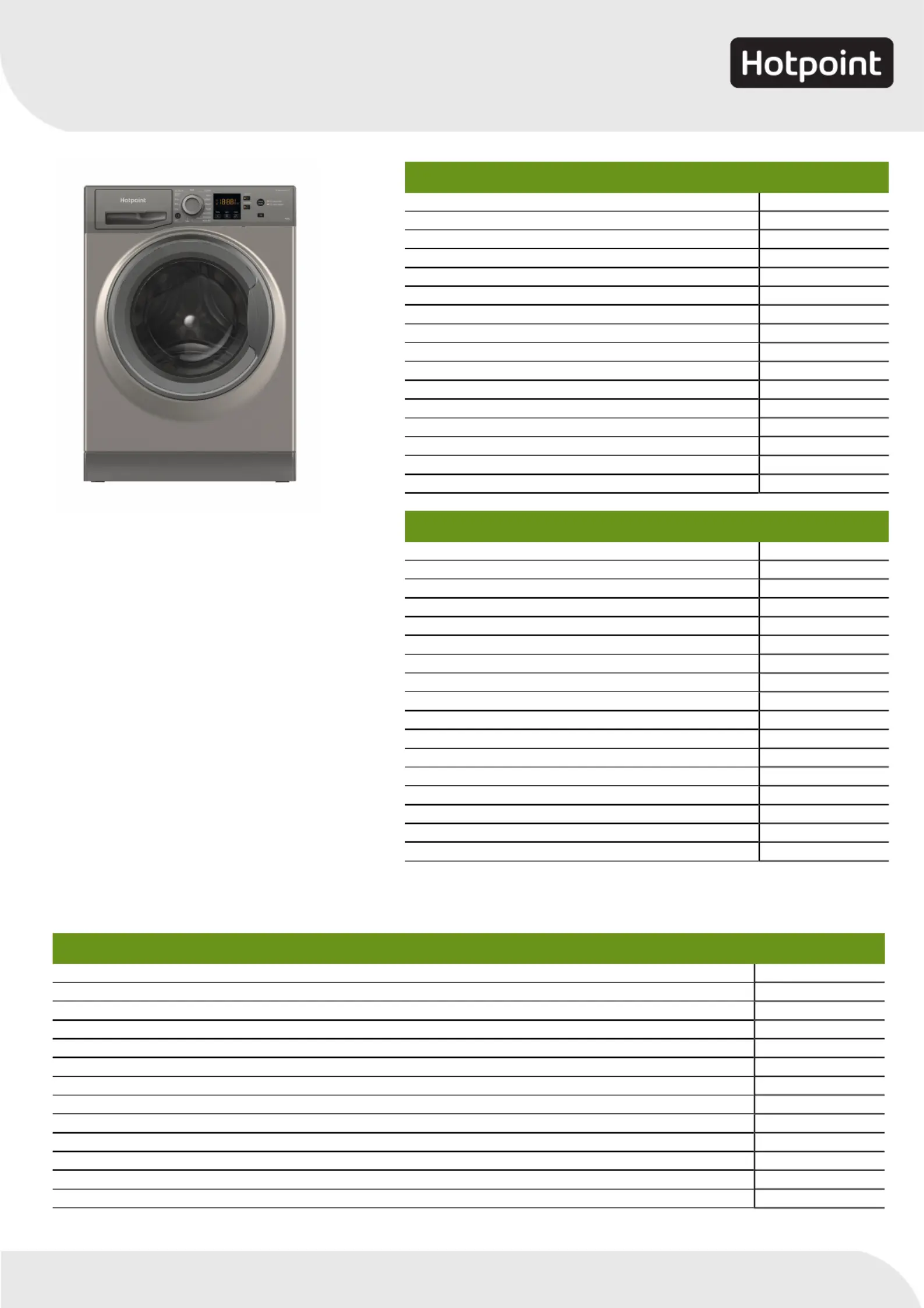 | Hotpoint-technologieën (kledingzorg): | Anti-allergy, Anti-stain, Extra Touch, Full Load 45', Rapid 30, Rapid option, Wool Cycle |