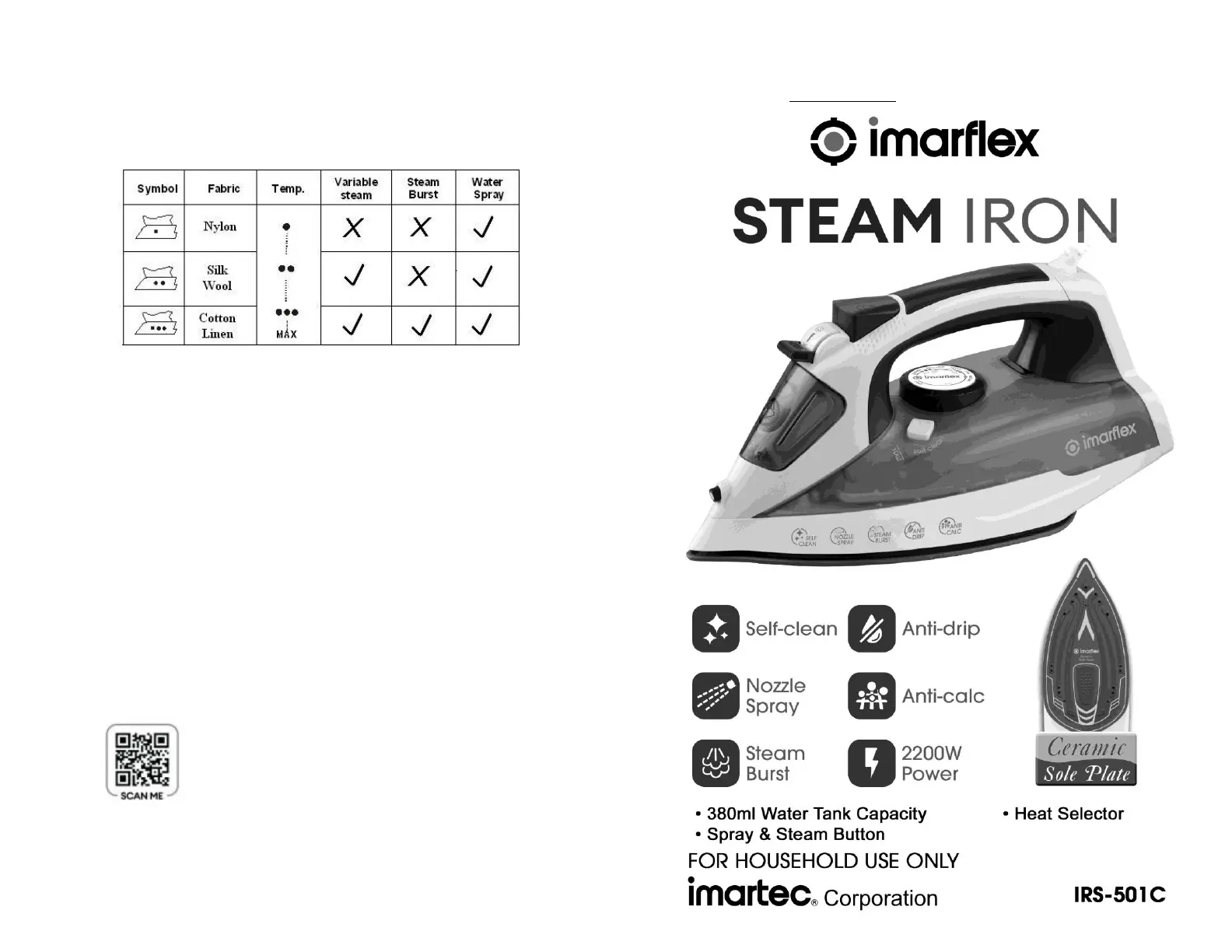 Bekijk gratis de handleiding van Imarflex IRS-501C (3 pagina’s), behorend tot de categorie Strijkijzer. Deze gids werd als nuttig beoordeeld door 14 mensen en kreeg gemiddeld 4.5 sterren uit 4 reviews. Heb je een vraag over Imarflex IRS-501C of wil je andere gebruikers van dit product iets vragen? Stel een vraag