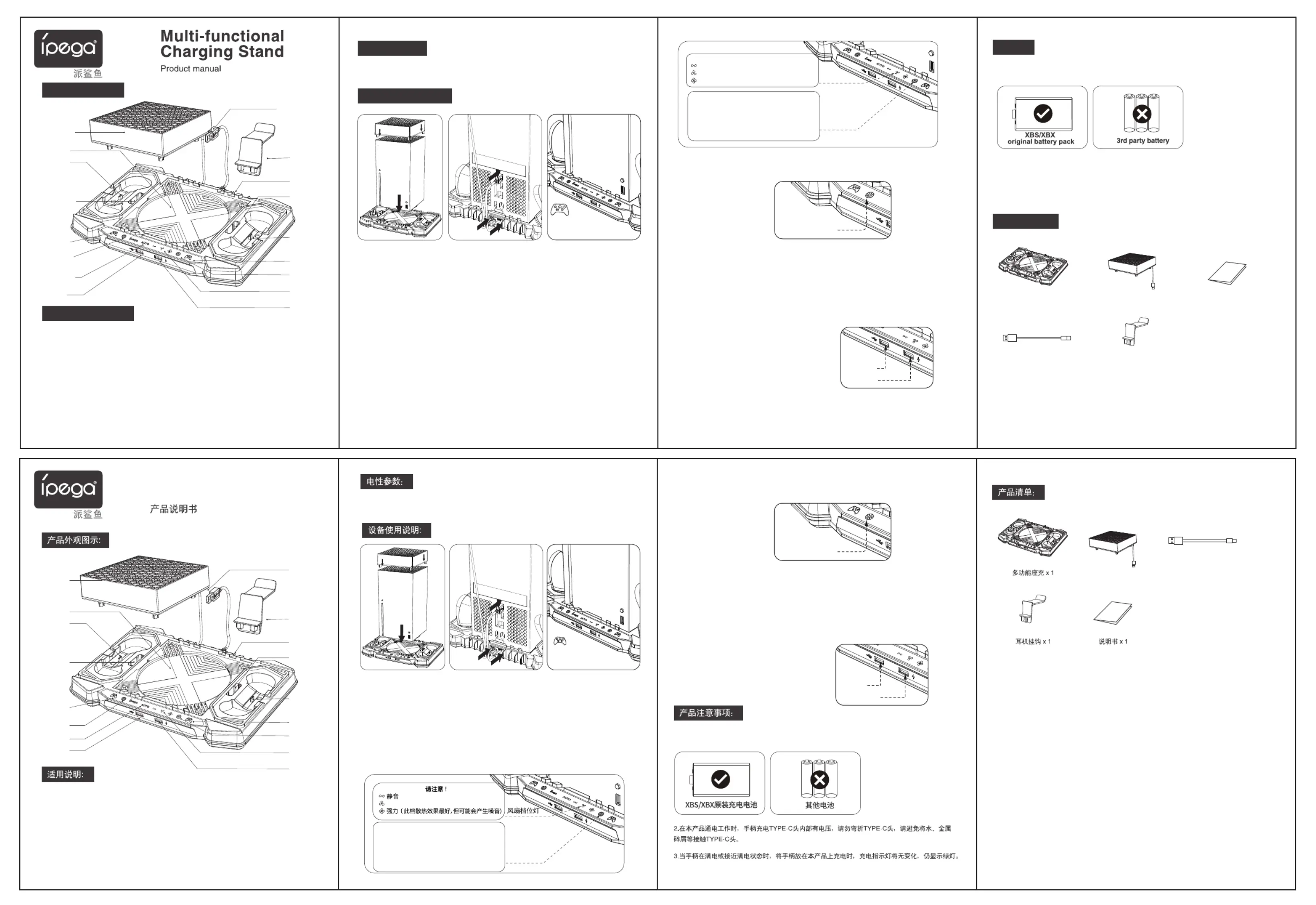 1.本产品手柄充电功能仅适用于XBS/XBX原装手柄与原装电池组,请勿为其他非原装手柄