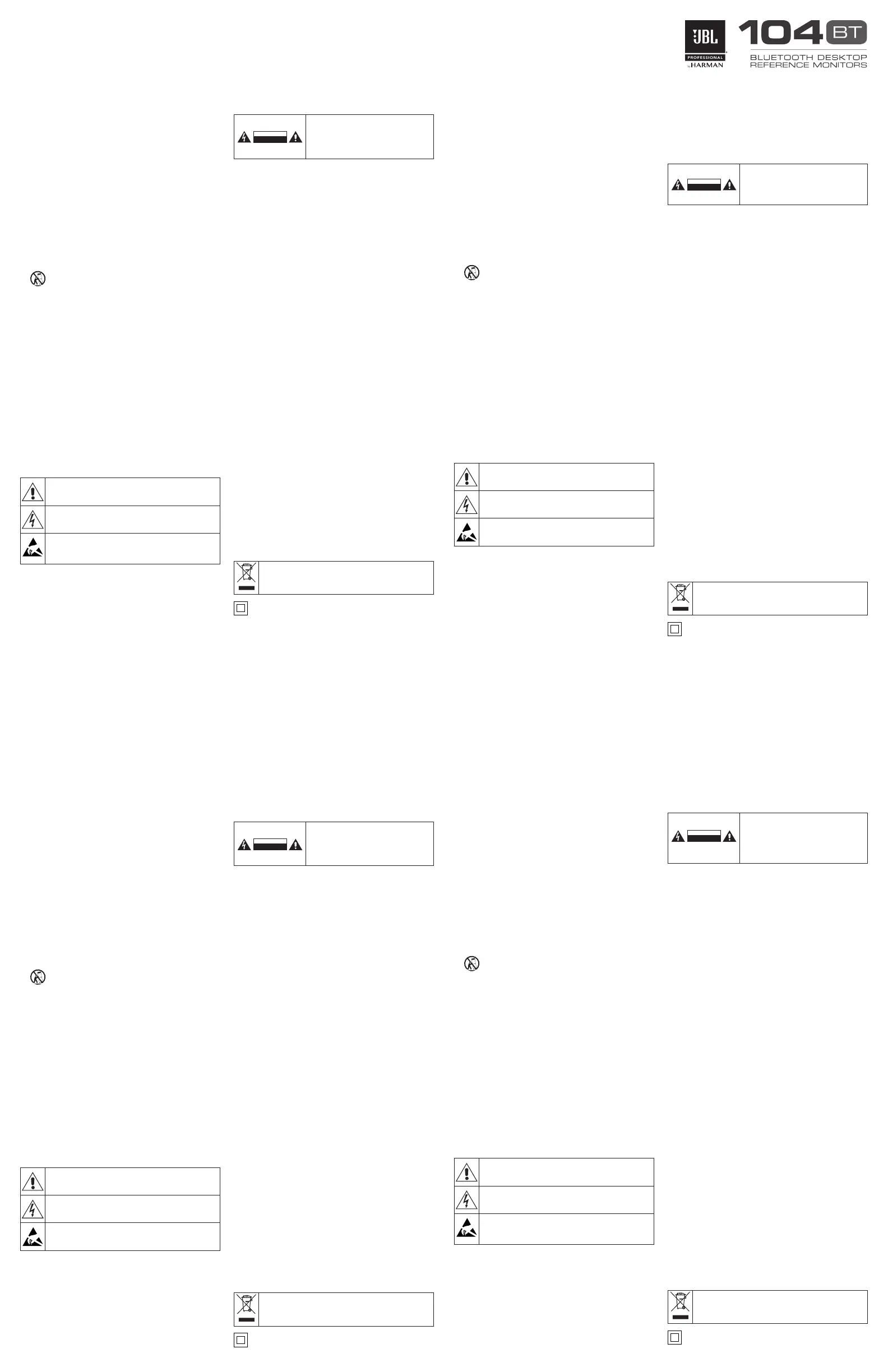 JBL 1 Series 104-BT Handleiding
