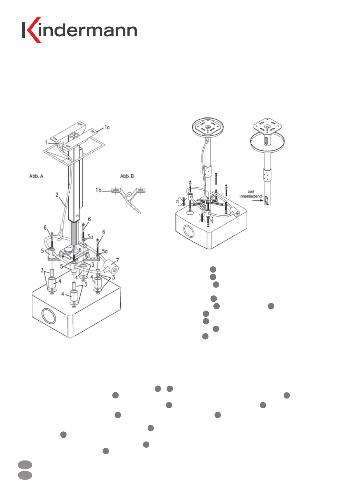 die Halterung an die Decke (Abb. B). Hinweis: Bei den Halterungen Kindermann Pro C 60/Pro 60/Pro 100 können Sie das