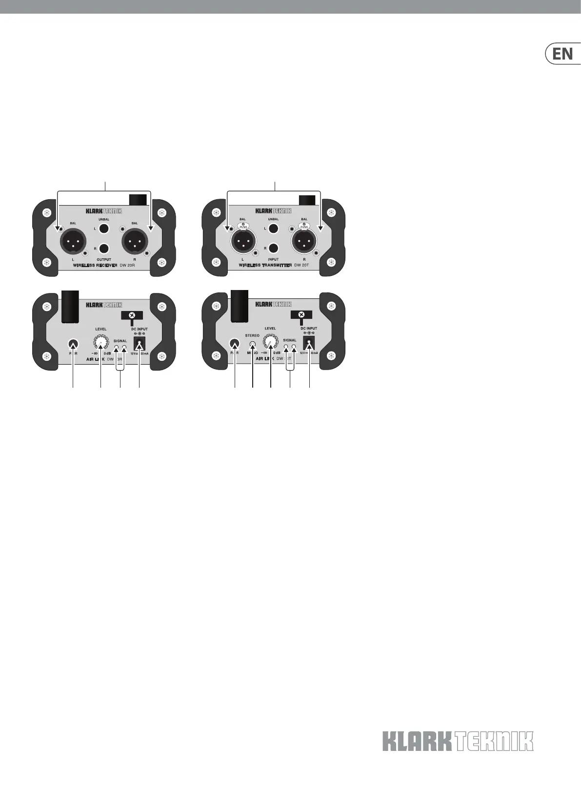 (3) SIGNAL LEDs light when the DW 20R receives