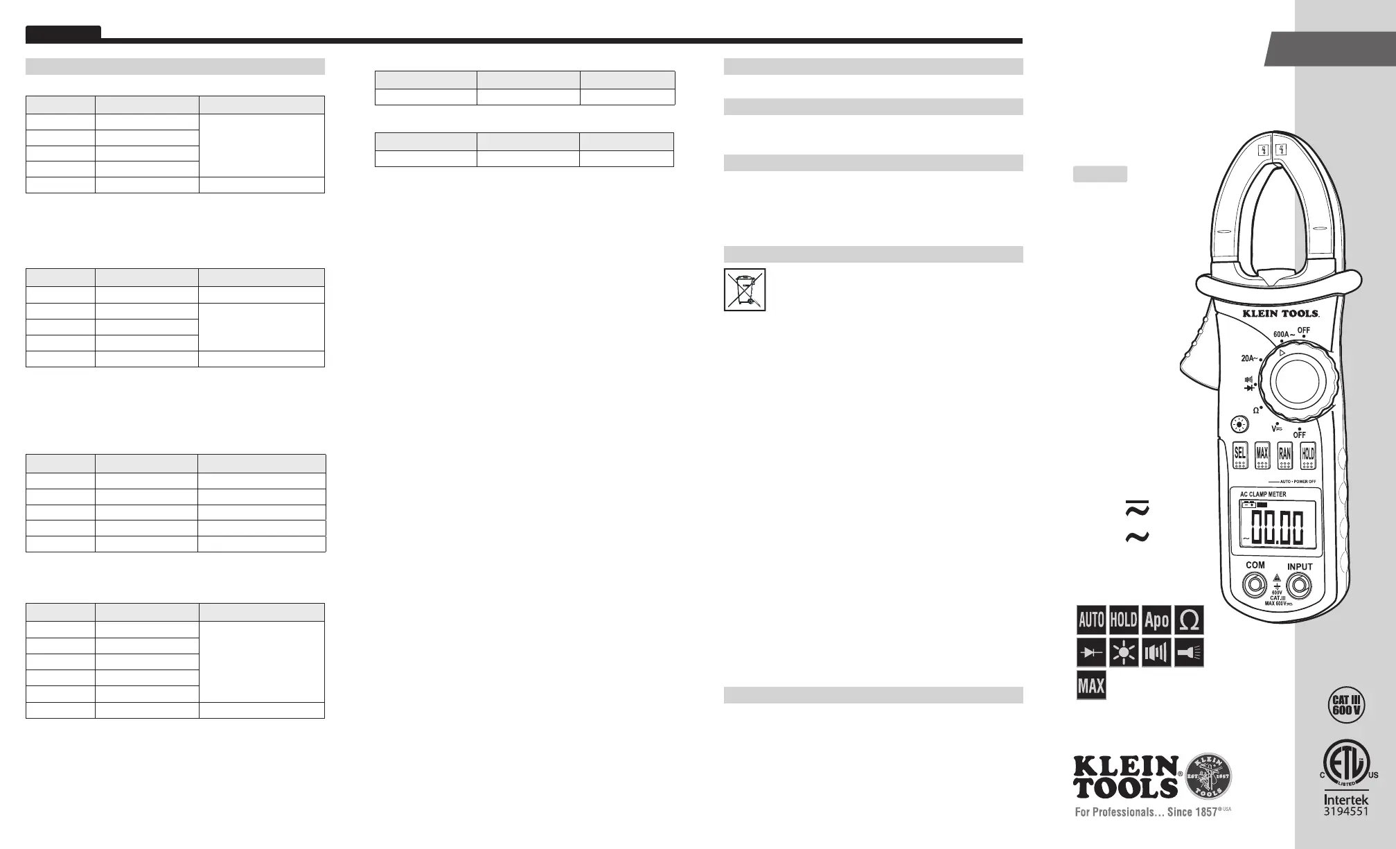 Bekijk gratis de handleiding van Klein Tools CL100 (8 pagina’s), behorend tot de categorie Meetapparatuur. Deze gids werd als nuttig beoordeeld door 16 mensen en kreeg gemiddeld 4.7 sterren uit 5 reviews. Heb je een vraag over Klein Tools CL100 of wil je andere gebruikers van dit product iets vragen? Stel een vraag