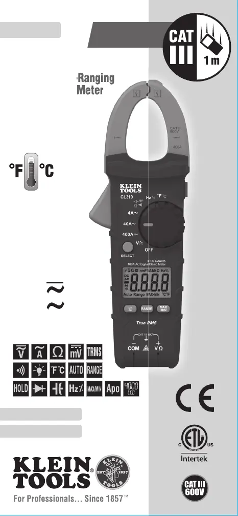 Bekijk gratis de handleiding van Klein Tools CL310 (56 pagina’s), behorend tot de categorie Meetapparatuur. Deze gids werd als nuttig beoordeeld door 17 mensen en kreeg gemiddeld 4.2 sterren uit 6 reviews. Heb je een vraag over Klein Tools CL310 of wil je andere gebruikers van dit product iets vragen? Stel een vraag