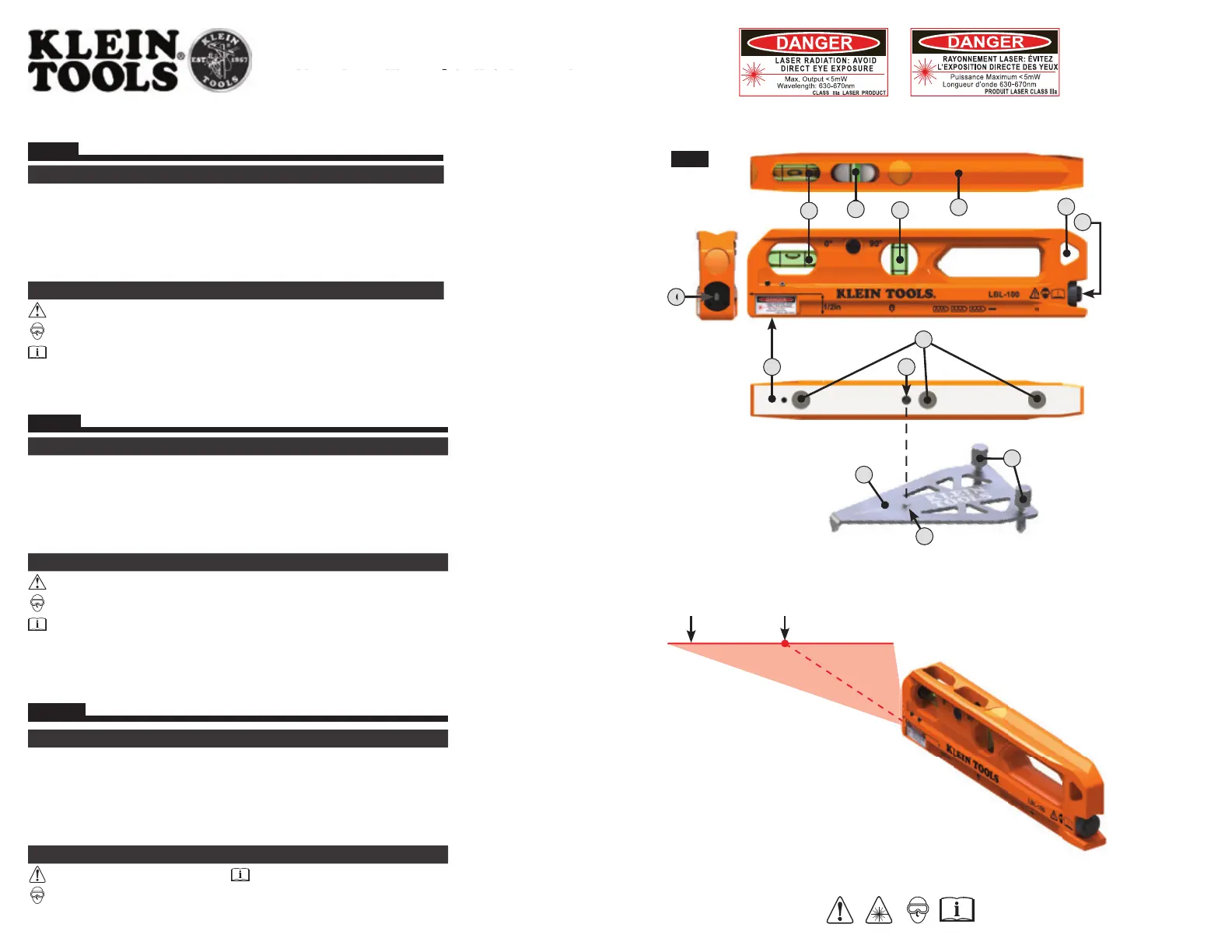 Bekijk gratis de handleiding van Klein Tools LBL100 (4 pagina’s), behorend tot de categorie Laserwaterpas. Deze gids werd als nuttig beoordeeld door 13 mensen en kreeg gemiddeld 4.7 sterren uit 6 reviews. Heb je een vraag over Klein Tools LBL100 of wil je andere gebruikers van dit product iets vragen? Stel een vraag
