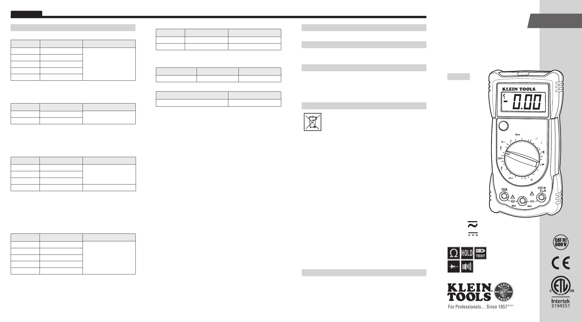 Bekijk gratis de handleiding van Klein Tools MM100 (39 pagina’s), behorend tot de categorie Multimeter. Deze gids werd als nuttig beoordeeld door 16 mensen en kreeg gemiddeld 4.2 sterren uit 9 reviews. Heb je een vraag over Klein Tools MM100 of wil je andere gebruikers van dit product iets vragen? Stel een vraag