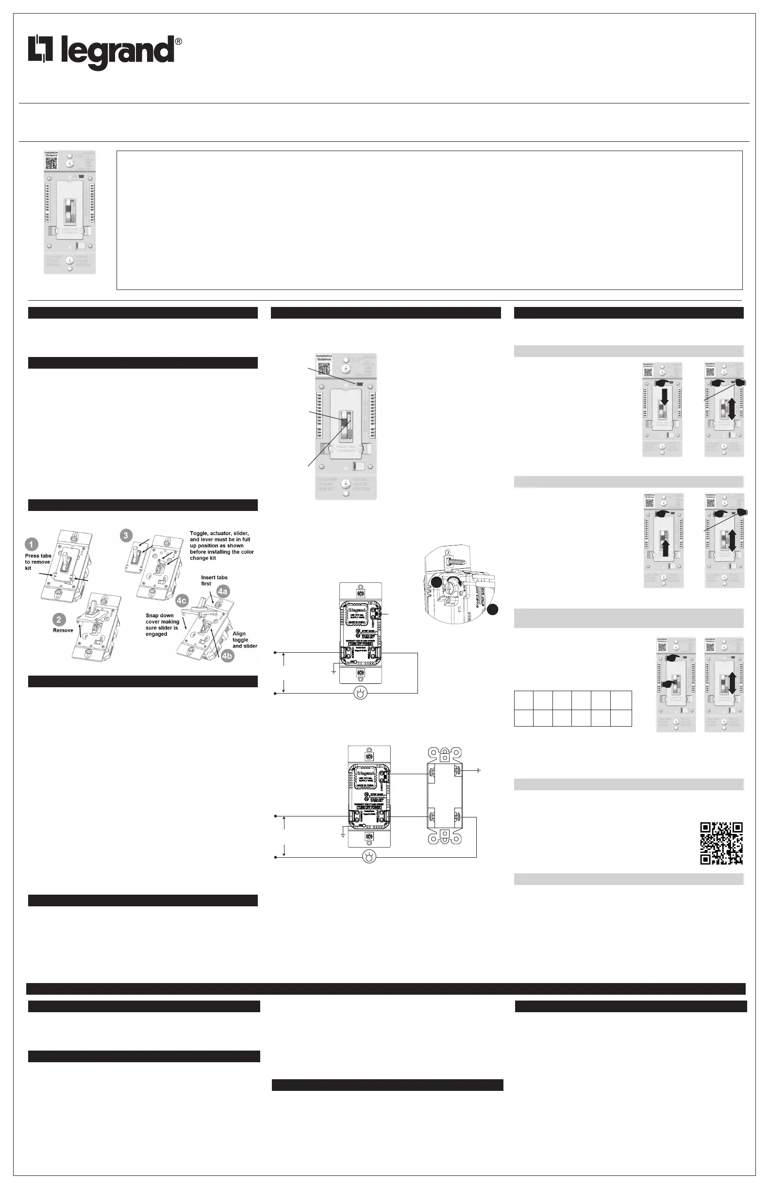 14. Notez que les positions du gradateur et de l’interrupteur à trois voies