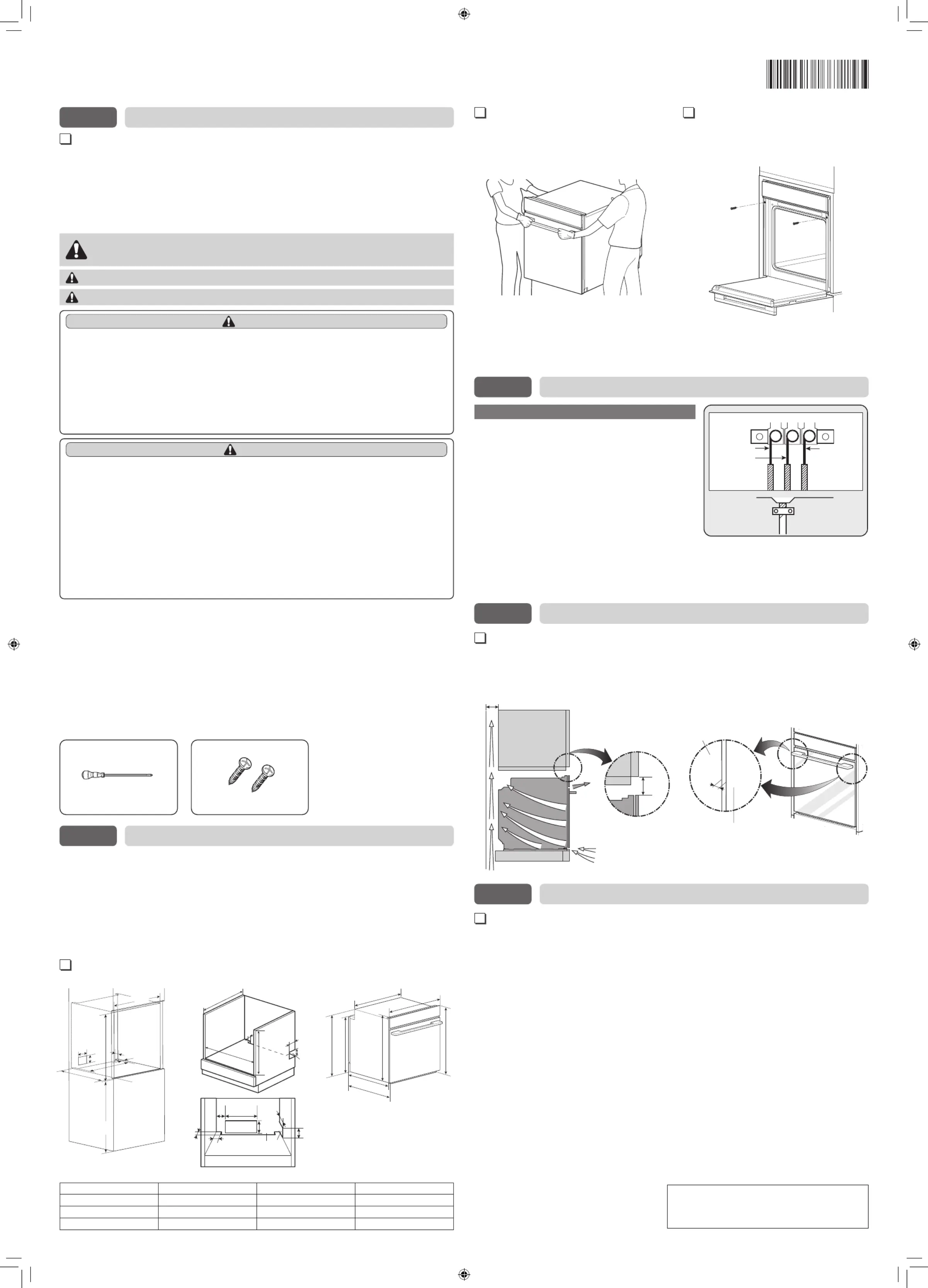 - Failure to do so can result in the oven falling out of the cabinet causing serious injury.