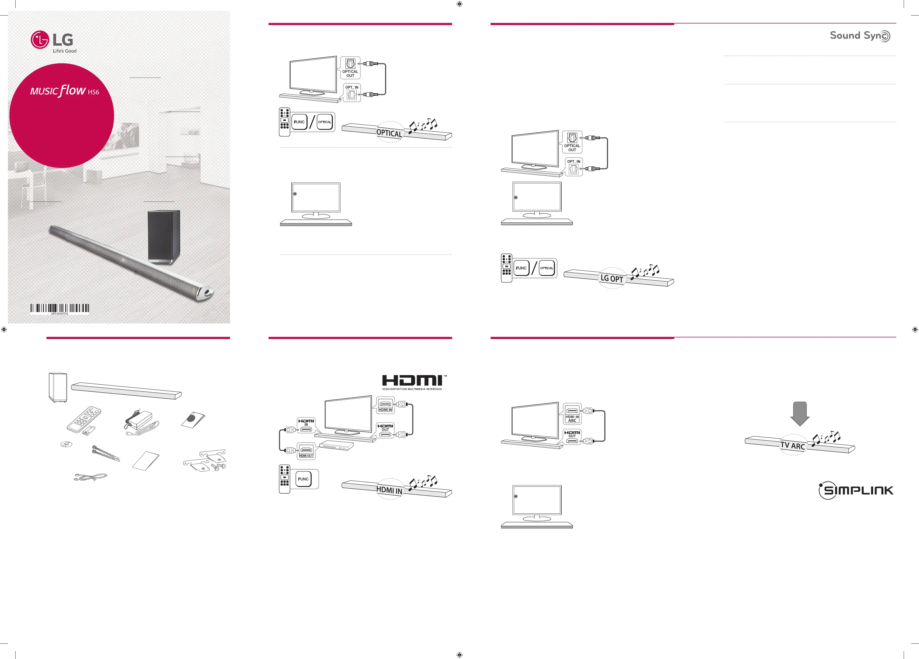 Bekijk gratis de handleiding van LG MUSICflow HS6 (4 pagina’s), behorend tot de categorie Soundbar. Deze gids werd als nuttig beoordeeld door 2 mensen en kreeg gemiddeld 4.6 sterren uit 7 reviews. Heb je een vraag over LG MUSICflow HS6 of wil je andere gebruikers van dit product iets vragen? Stel een vraag