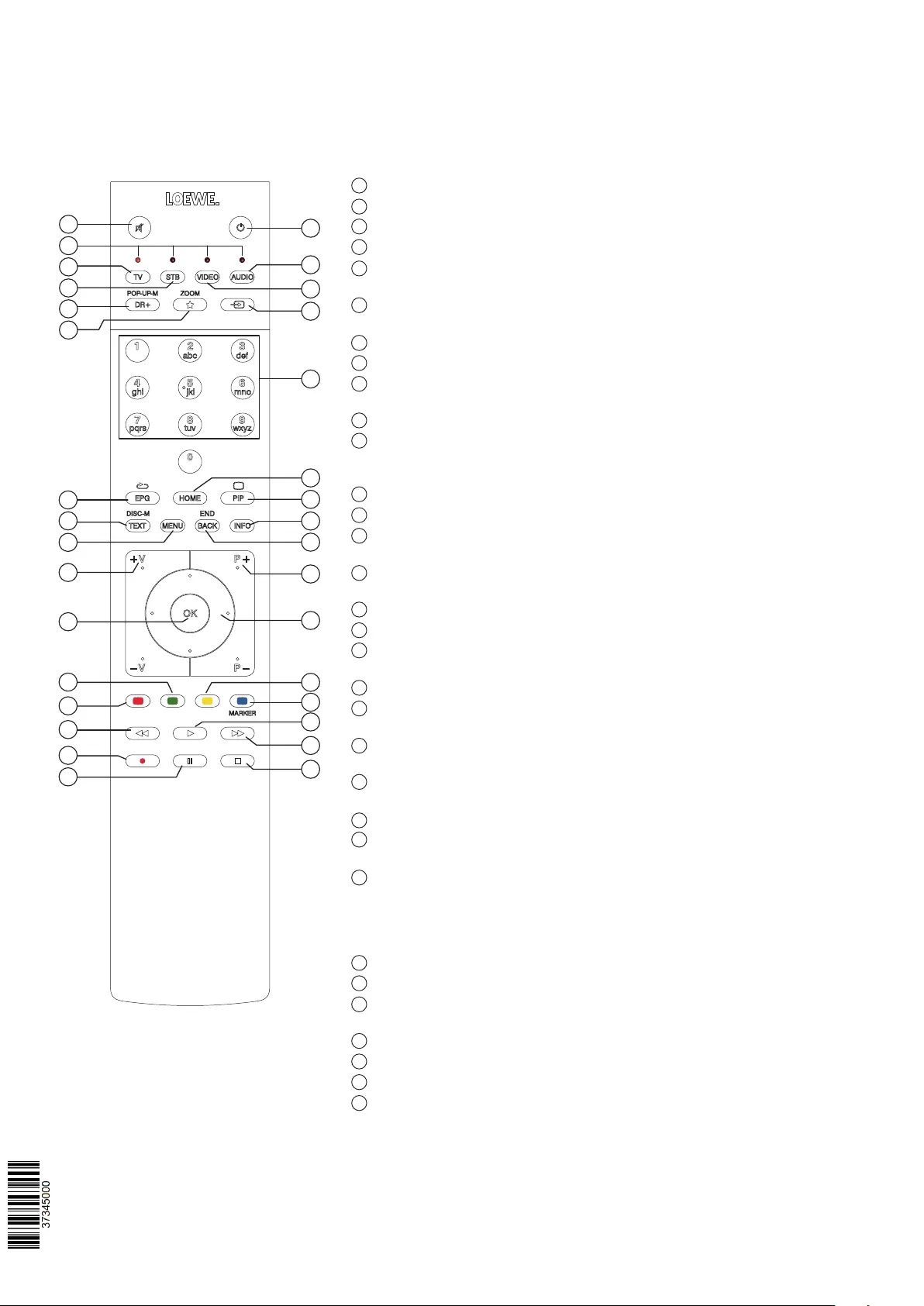 Je nach gewählter Betriebsart (TV/Video/Audio/Foto/Apps) und Funktion (z.B. DR+, EPG, PIP, Teletext, HbbTV usw.) kann die Tastenbelegung