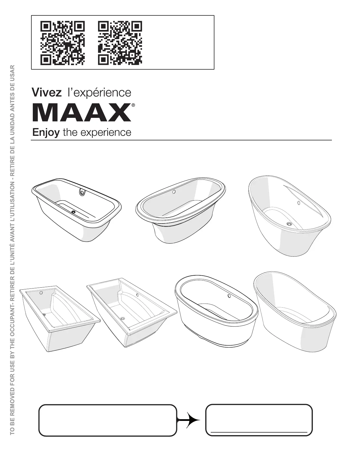 TO BE REMOVED FOR USE BY THE OCCUPANT- RETIRER DE L’UNITÉ AVANT L’UTILISATION - RETIRE DE LA UNIDAD ANTES DE USAR