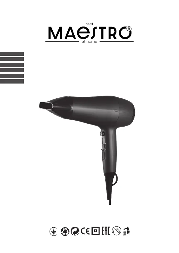 Bekijk gratis de handleiding van Maestro MR-217 (48 pagina’s), behorend tot de categorie Haardroger. Deze gids werd als nuttig beoordeeld door 14 mensen en kreeg gemiddeld 4.5 sterren uit 2 reviews. Heb je een vraag over Maestro MR-217 of wil je andere gebruikers van dit product iets vragen? Stel een vraag
