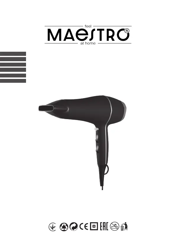 Bekijk gratis de handleiding van Maestro MR-221 (48 pagina’s), behorend tot de categorie Haardroger. Deze gids werd als nuttig beoordeeld door 16 mensen en kreeg gemiddeld 4.1 sterren uit 8 reviews. Heb je een vraag over Maestro MR-221 of wil je andere gebruikers van dit product iets vragen? Stel een vraag