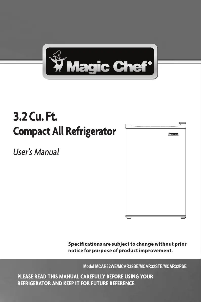 Bekijk gratis de handleiding van Magic Chef MCAR32BE (34 pagina’s), behorend tot de categorie Koelkast. Deze gids werd als nuttig beoordeeld door 11 mensen en kreeg gemiddeld 4.0 sterren uit 2 reviews. Heb je een vraag over Magic Chef MCAR32BE of wil je andere gebruikers van dit product iets vragen? Stel een vraag