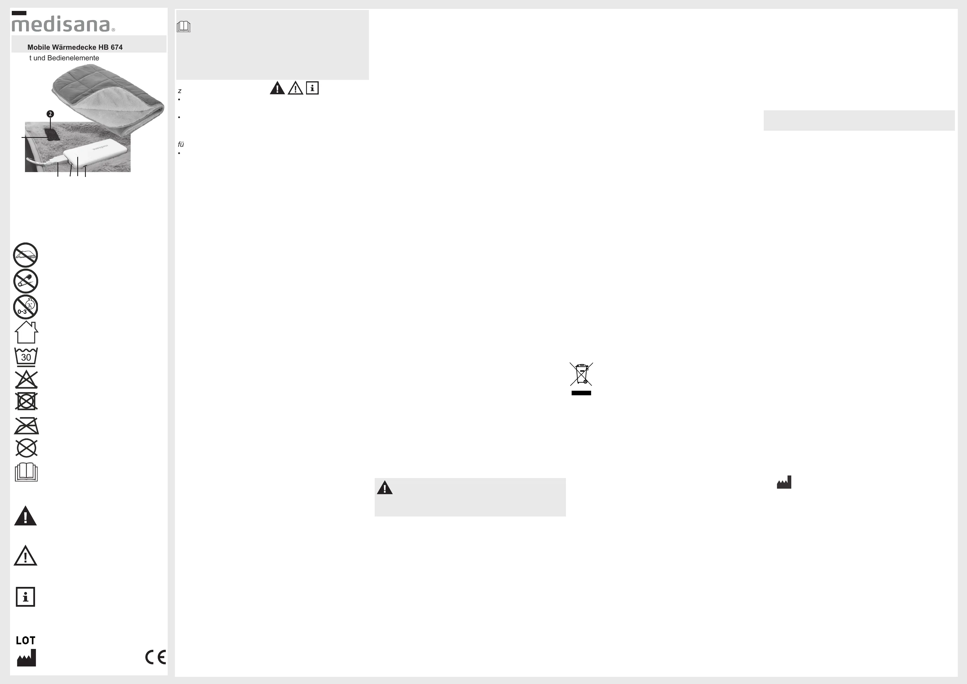 • 1 medisana mobileWärmedecke HB 674 mit abnehm-