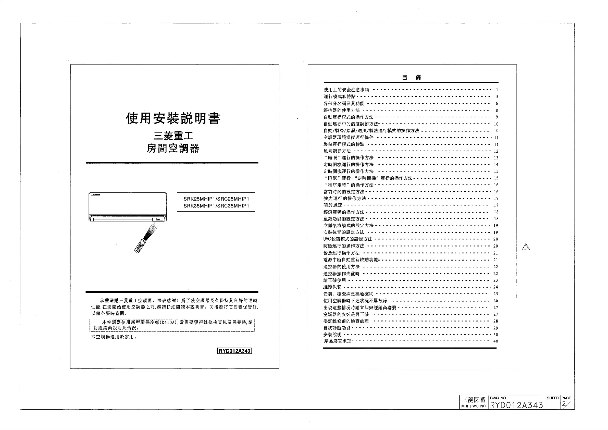 Mitsubishi SRK25MHIP1 Handleiding