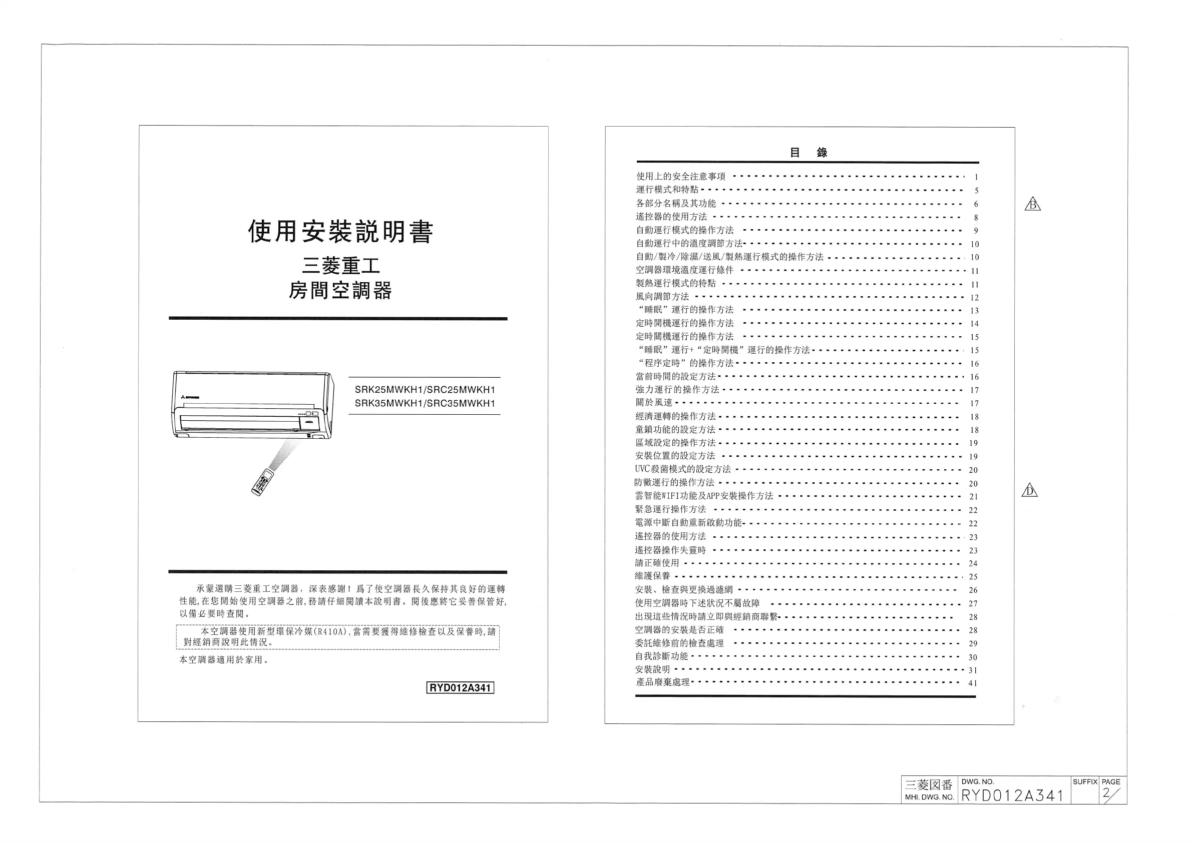 Mitsubishi SRK25MWKH1 Handleiding