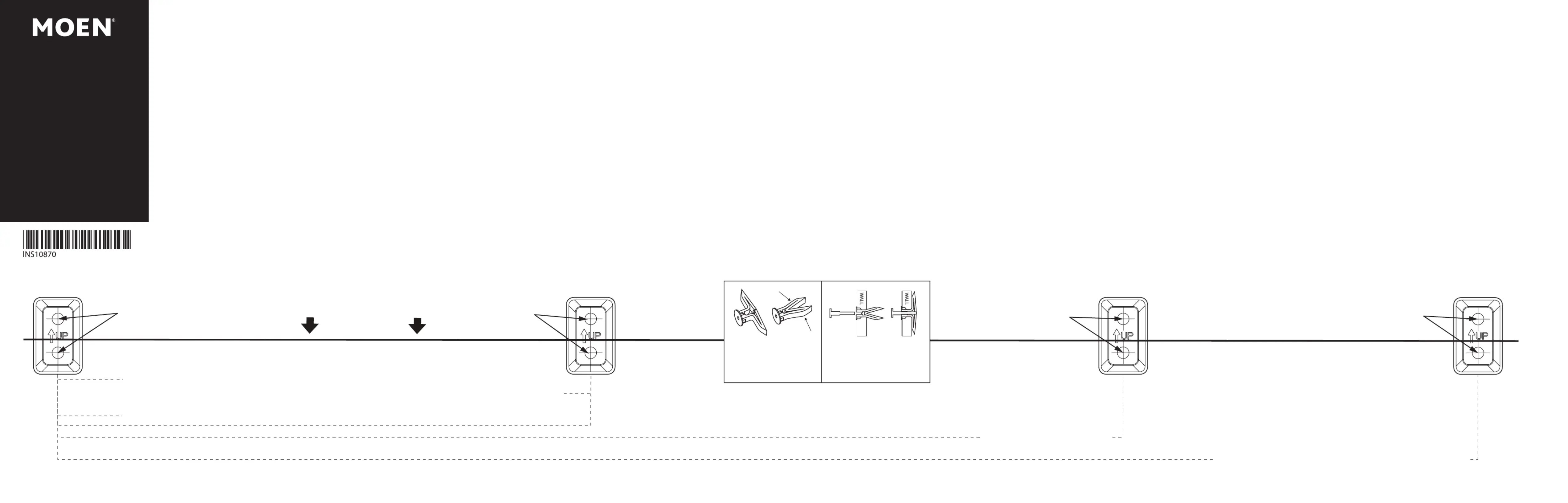9. Placez la chaque plaque de montage sur le mur par-dessus les dispositifs d’ancrage au mur, l’inscription « UP » vous faisant face.