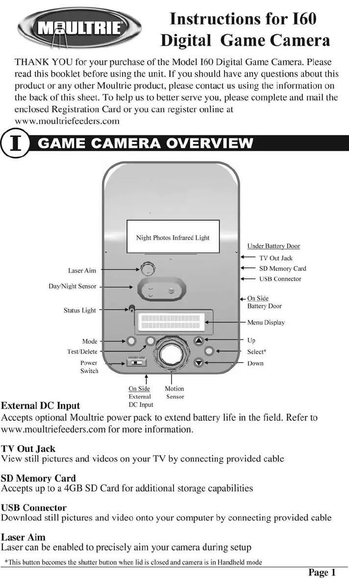 Bekijk gratis de handleiding van Moultrie I60 (10 pagina’s), behorend tot de categorie Fotocamera. Deze gids werd als nuttig beoordeeld door 30 mensen en kreeg gemiddeld 4.0 sterren uit 6 reviews. Heb je een vraag over Moultrie I60 of wil je andere gebruikers van dit product iets vragen? Stel een vraag