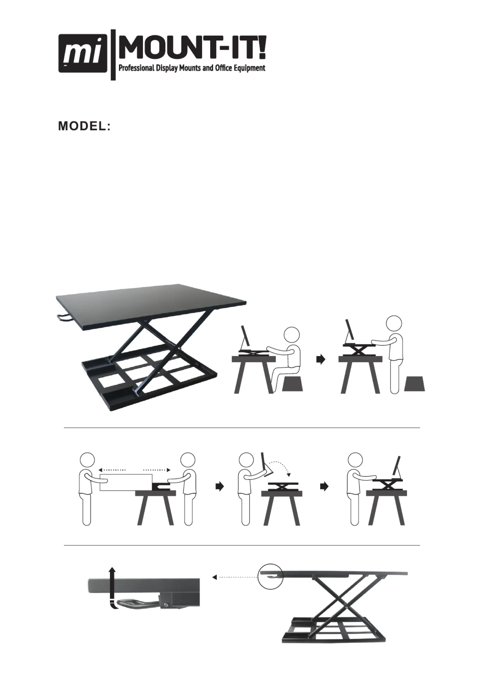 2.Use the lever to raise the desk. Hold both sides of the desk,squeeze the lever,