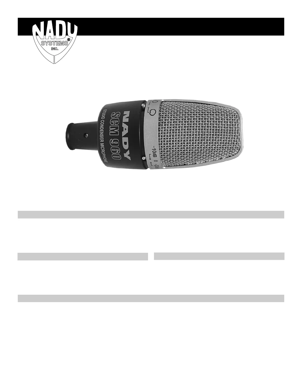 Congratulations on purchasing a Nady SCM 960 Condenser Microphone. These superior microphone is perfect for