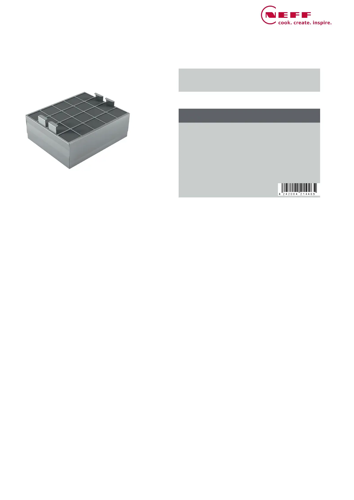Bekijk gratis de handleiding van Neff Z50XXP0X0 (2 pagina’s), behorend tot de categorie Afzuigkap. Deze gids werd als nuttig beoordeeld door 15 mensen en kreeg gemiddeld 4.5 sterren uit 4 reviews. Heb je een vraag over Neff Z50XXP0X0 of wil je andere gebruikers van dit product iets vragen? Stel een vraag
