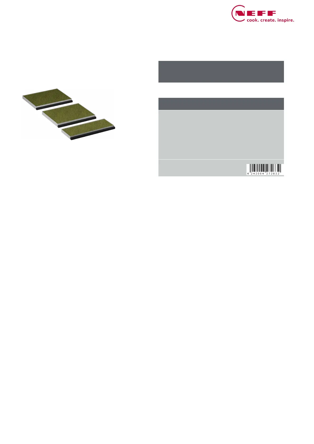 Bekijk gratis de handleiding van Neff Z51BIB1X6 (2 pagina’s), behorend tot de categorie Afzuigkap. Deze gids werd als nuttig beoordeeld door 10 mensen en kreeg gemiddeld 4.9 sterren uit 9 reviews. Heb je een vraag over Neff Z51BIB1X6 of wil je andere gebruikers van dit product iets vragen? Stel een vraag