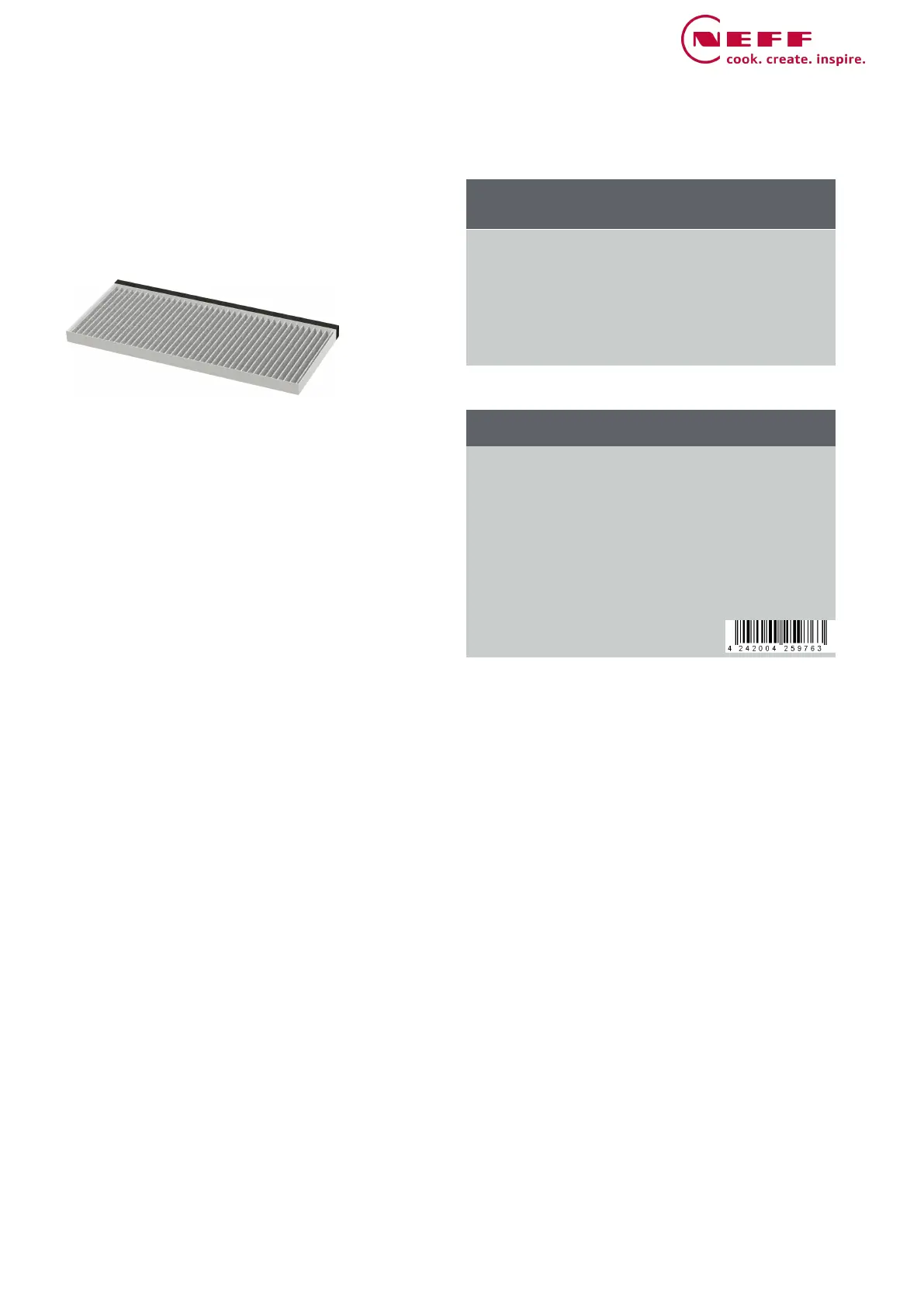 Bekijk gratis de handleiding van Neff Z51ITB1X4 (2 pagina’s), behorend tot de categorie Afzuigkap. Deze gids werd als nuttig beoordeeld door 22 mensen en kreeg gemiddeld 4.8 sterren uit 5 reviews. Heb je een vraag over Neff Z51ITB1X4 of wil je andere gebruikers van dit product iets vragen? Stel een vraag