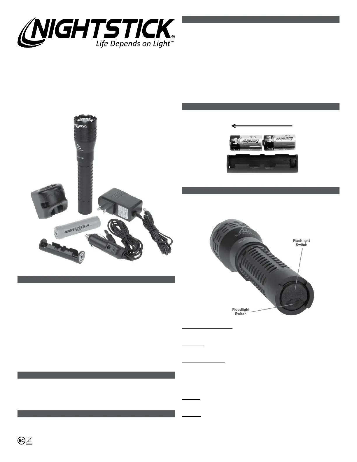 yUse only the supplied Nightstick charger, battery and AC or DC adapter. For best