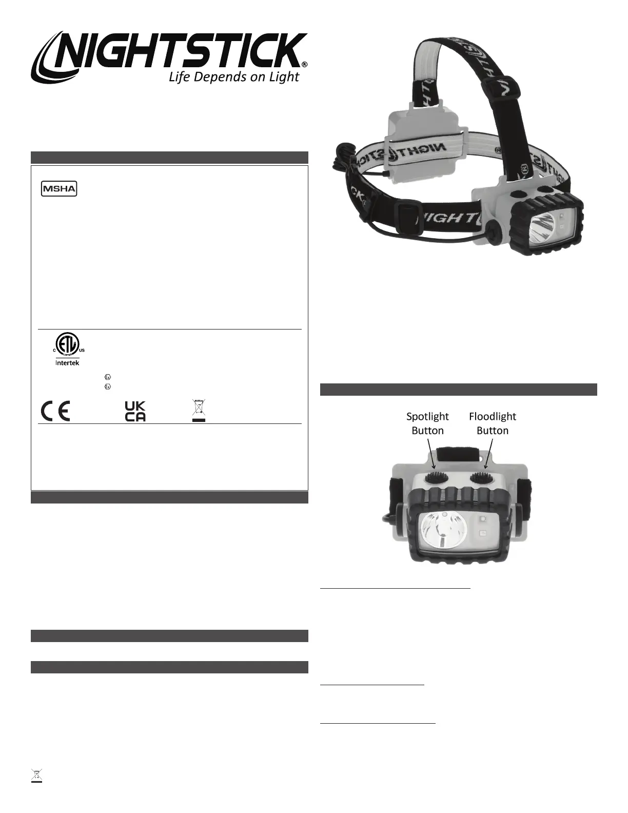 The Model XPP-5458G Safety Headlamp is approved as a mine light