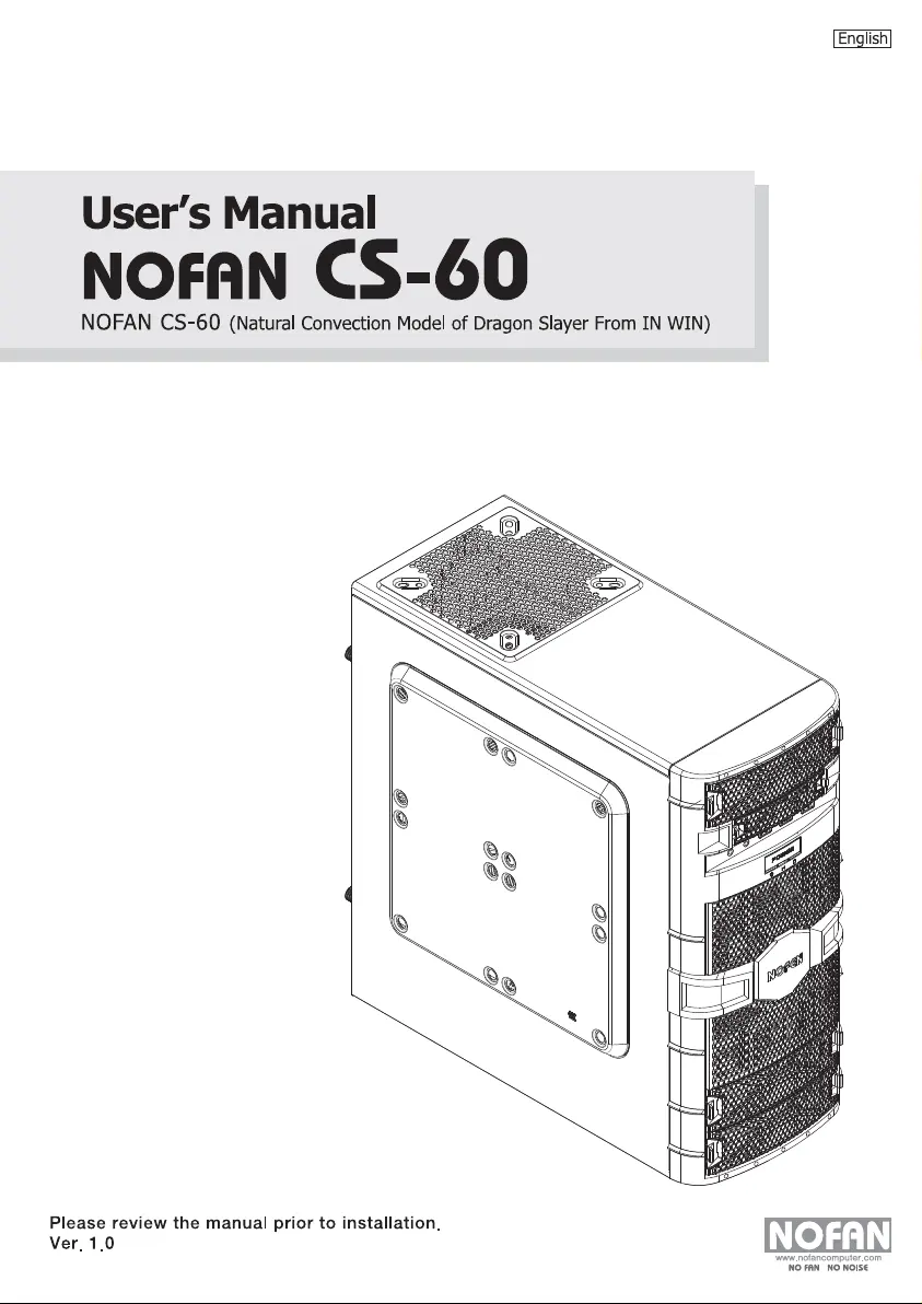 Bekijk gratis de handleiding van Nofan CS-60 (12 pagina’s), behorend tot de categorie Computerbehuizing. Deze gids werd als nuttig beoordeeld door 19 mensen en kreeg gemiddeld 4.2 sterren uit 2 reviews. Heb je een vraag over Nofan CS-60 of wil je andere gebruikers van dit product iets vragen? Stel een vraag