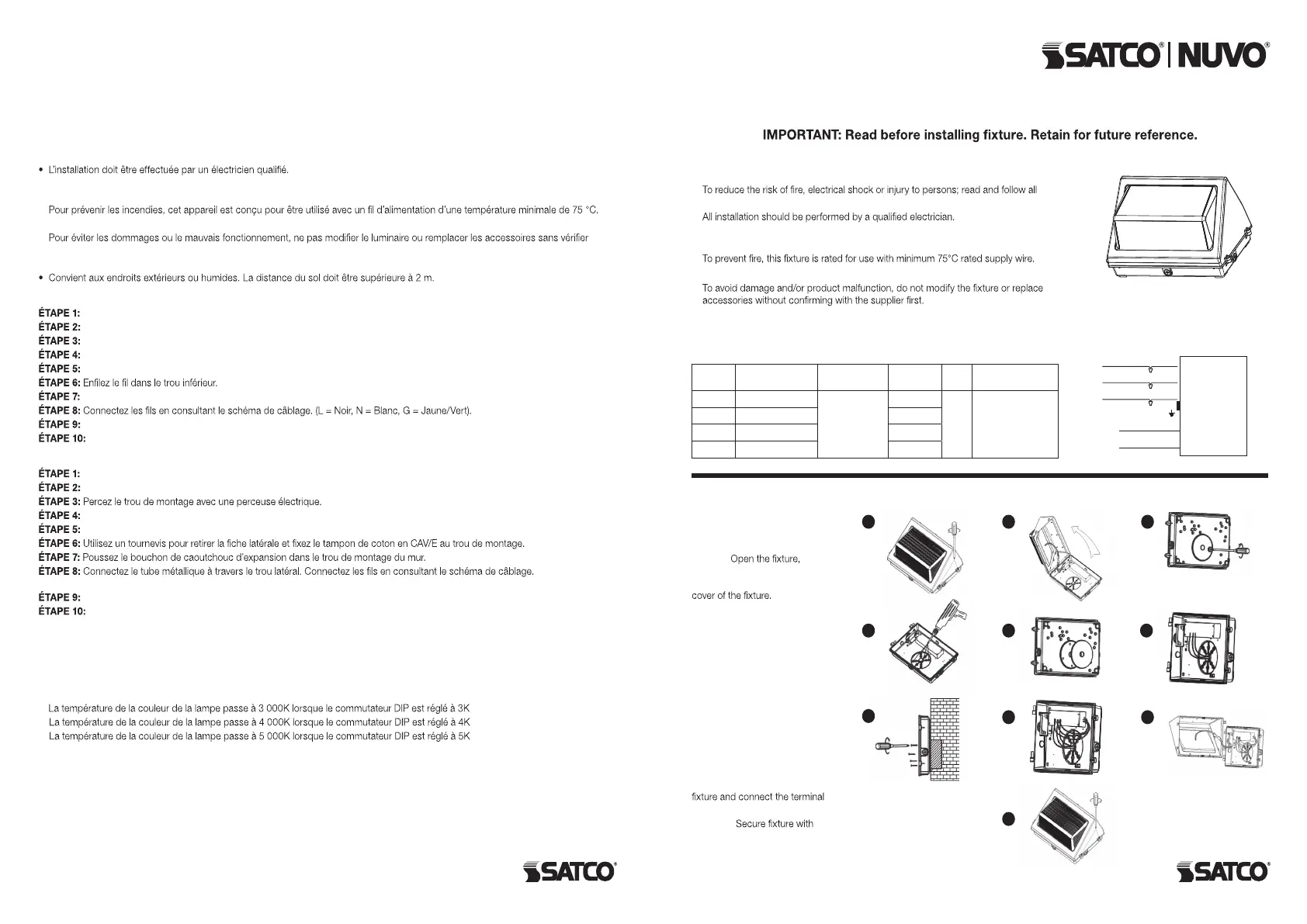 IMPORTANT: Lisez avant d’installer le luminaire. Conservez à titre de référence.